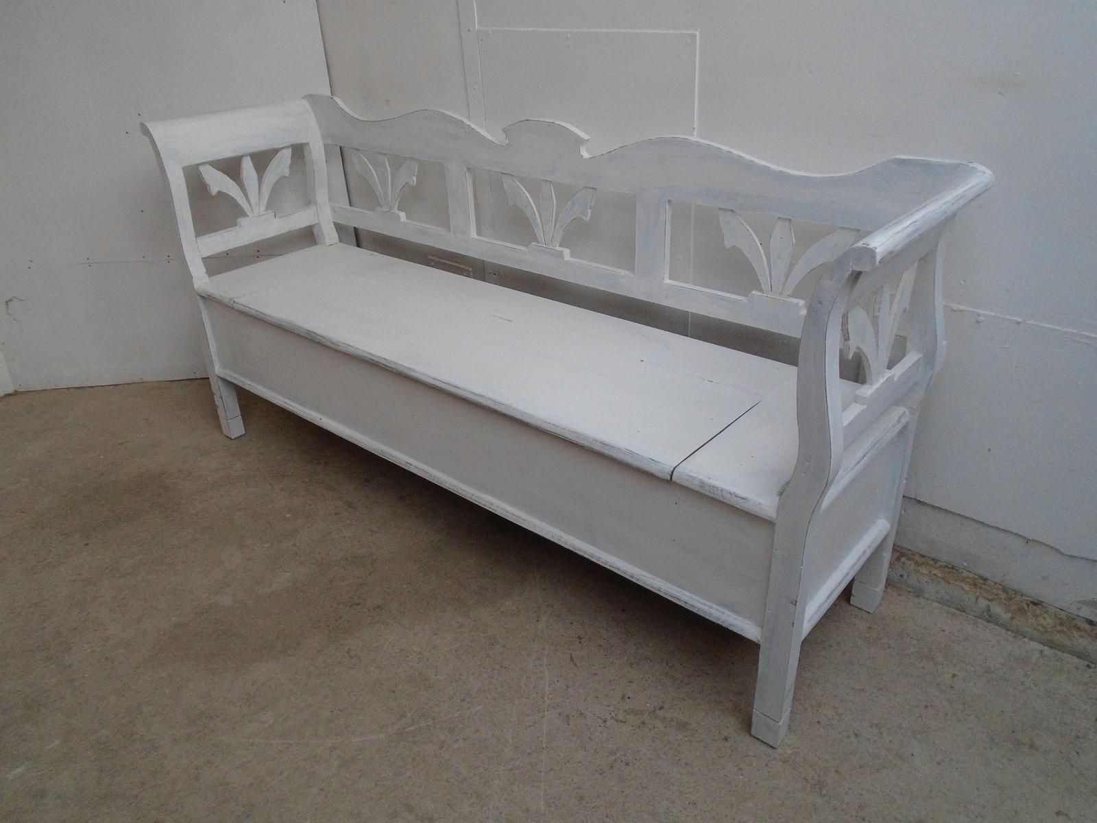 A 3 Seater Shabby Chic Tulip Pine Painted White Box Settle / Hall Bench
