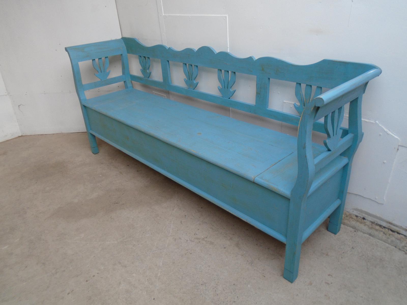 A 3/4 Seater Shabby Chic Pine Painted Turquoise Box Settle / Hall Bench