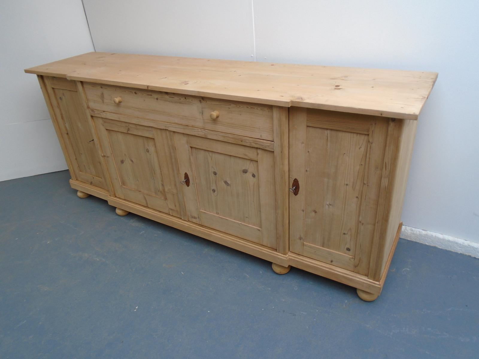 A 4 Door Breakfront Antique / Old Pine Dresser Base / TV Stand to Wax / Paint