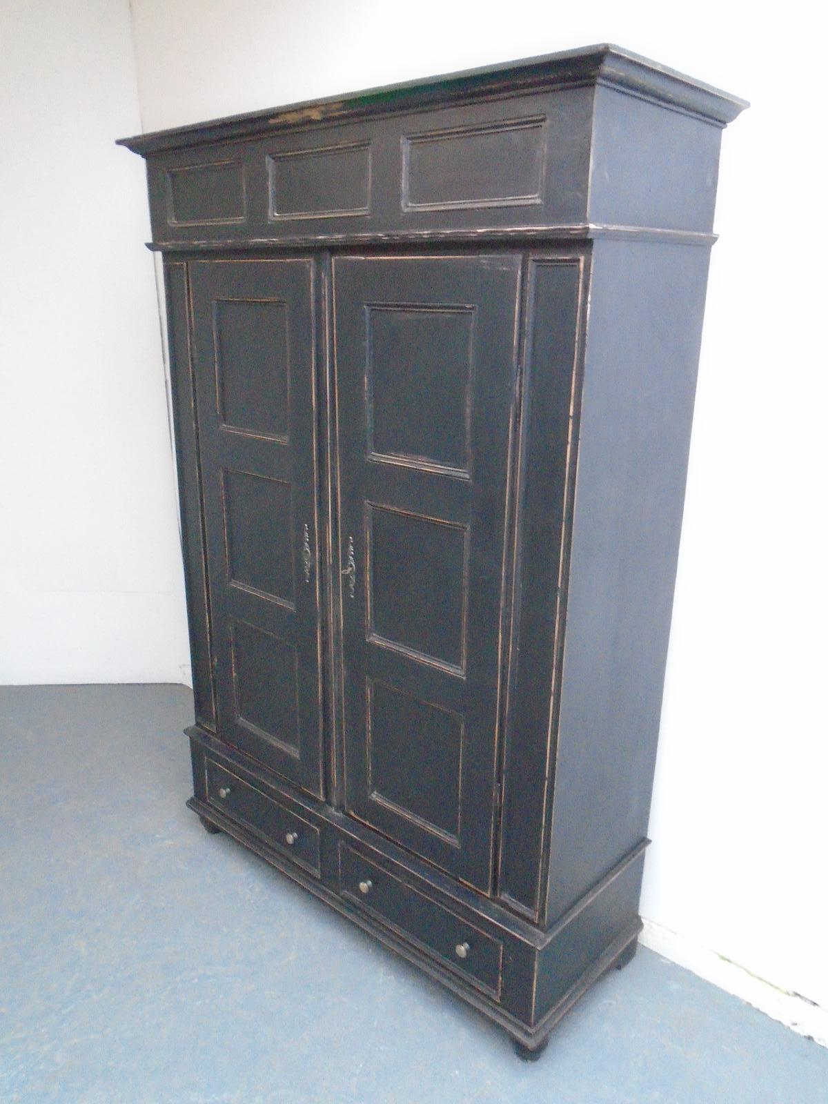 A 6 Panel Painted Black 2 Door Georgian Antique / Old Pine Child / Hall Wardrobe