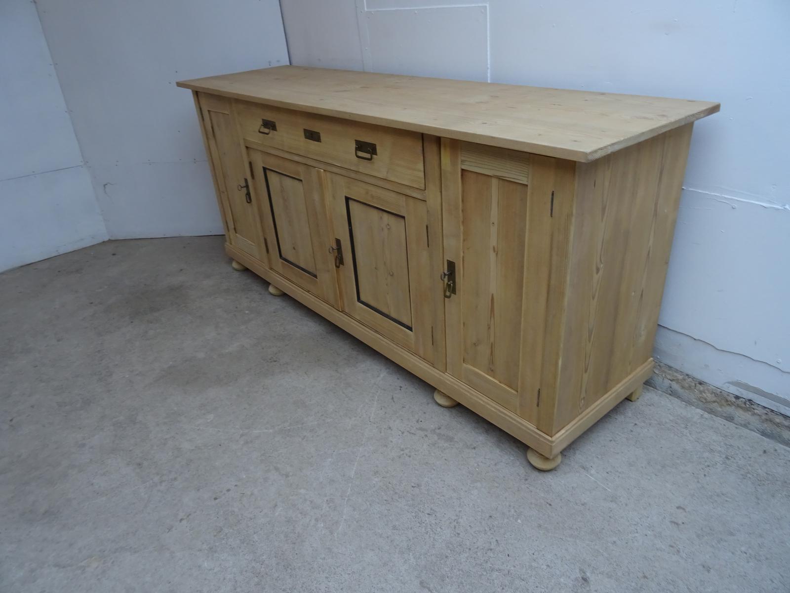 A Beaded 4 Door Antique / Old Pine Dresser Base / Sideboard to Wax / Paint