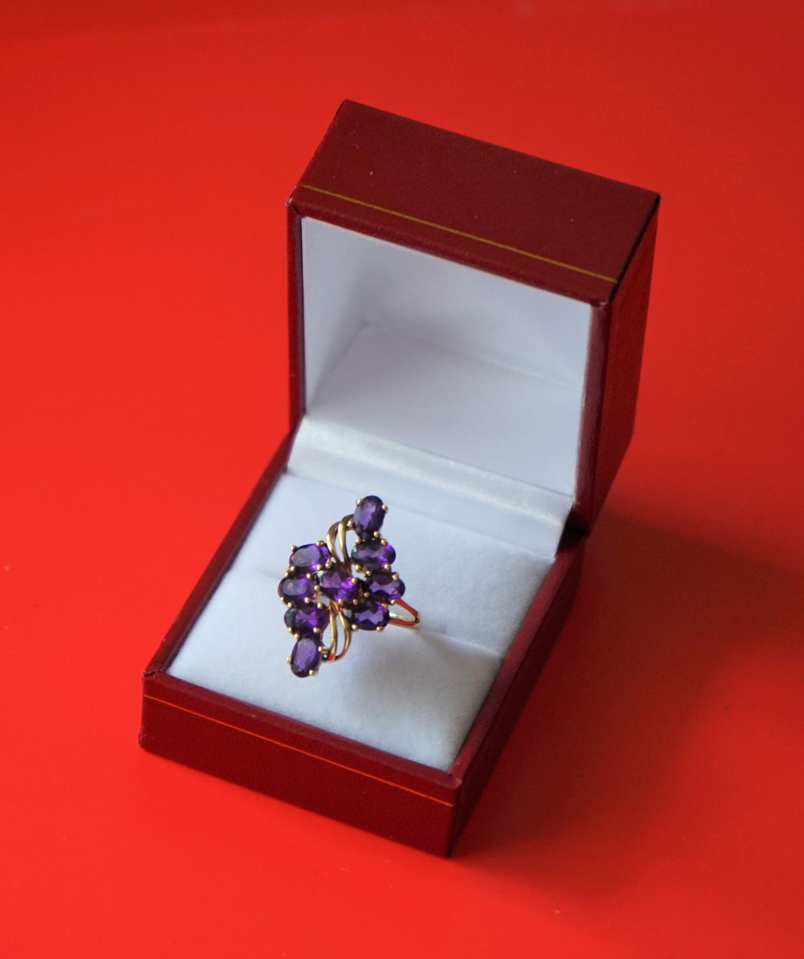 A Beautiful Designer 9 Stone Amethyst Ring Boxed - Ideal Birtday Present (1 of 8)