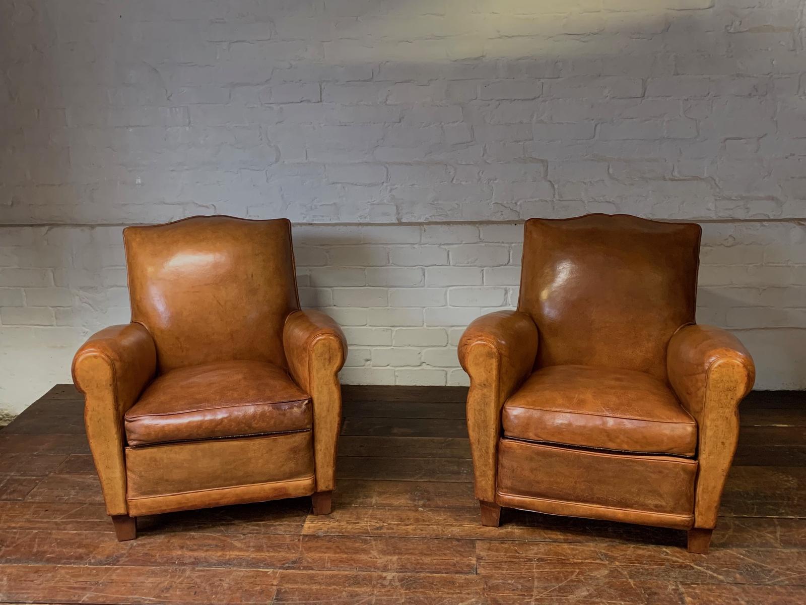 A Very Beautiful French Leather Club Chair Havana Moustache Model Circa 1930’s