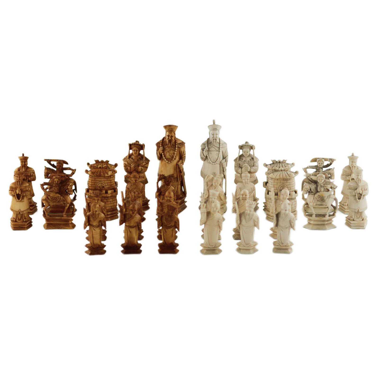 A Beautiful Set of Chinese Ivory Chess Pieces. The Turn of the 19th-20th Centuries.