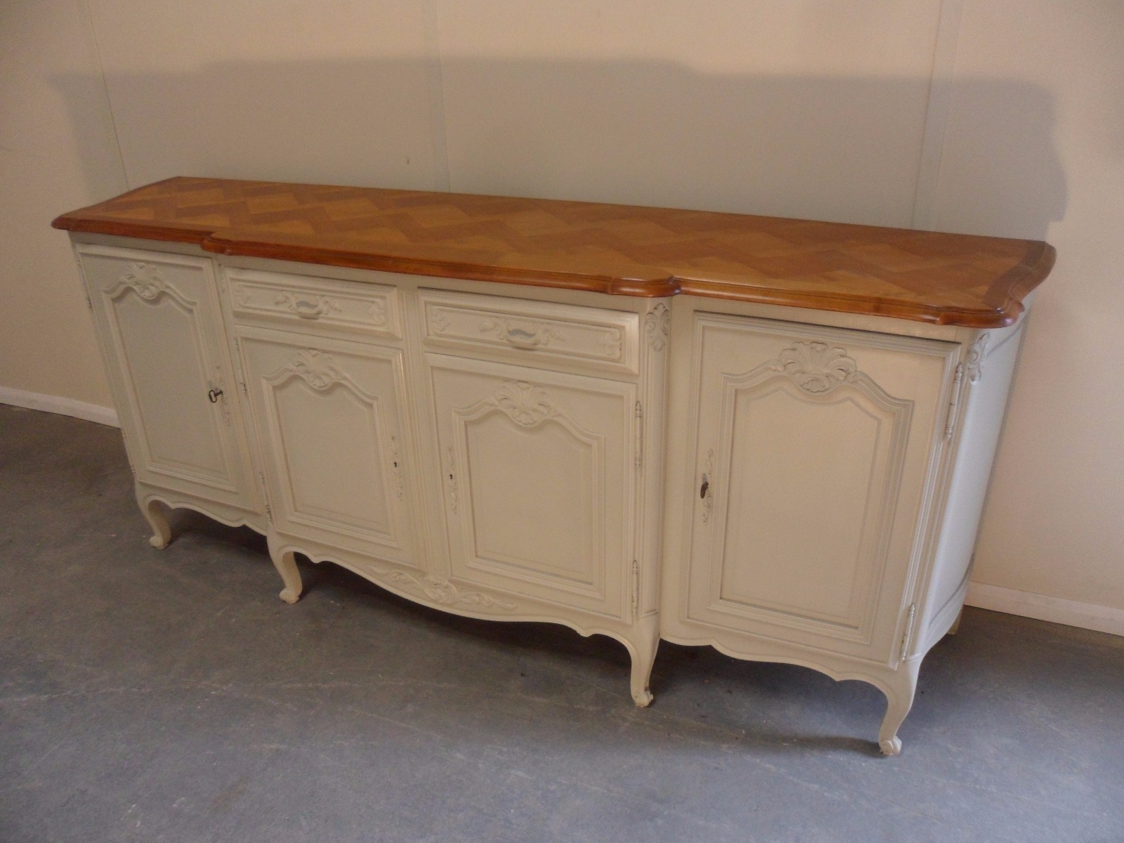A Beautifully Painted Large 4 Door 2 Drawer Parque Top Cherrywood Sideboard