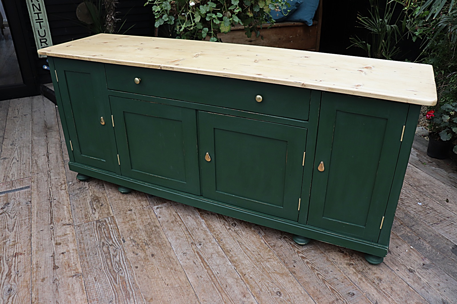 A Big! Old 2M Pine / Farrow & Ball Duck Green Painted Dresser / Sideboard / Cupboard