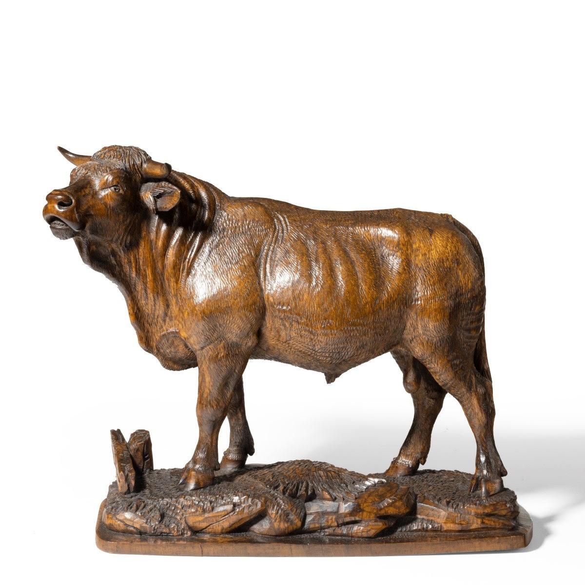 A 'Black Forest’ Linden Wood Model of a Standing Bull (1 of 5)