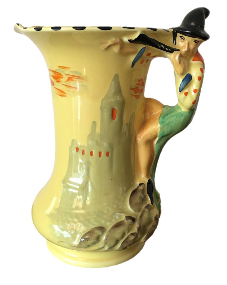 A Burleigh Ware ‘Pied Piper’ Jug with Figural Handle and Hand Painted Design C.1930’S