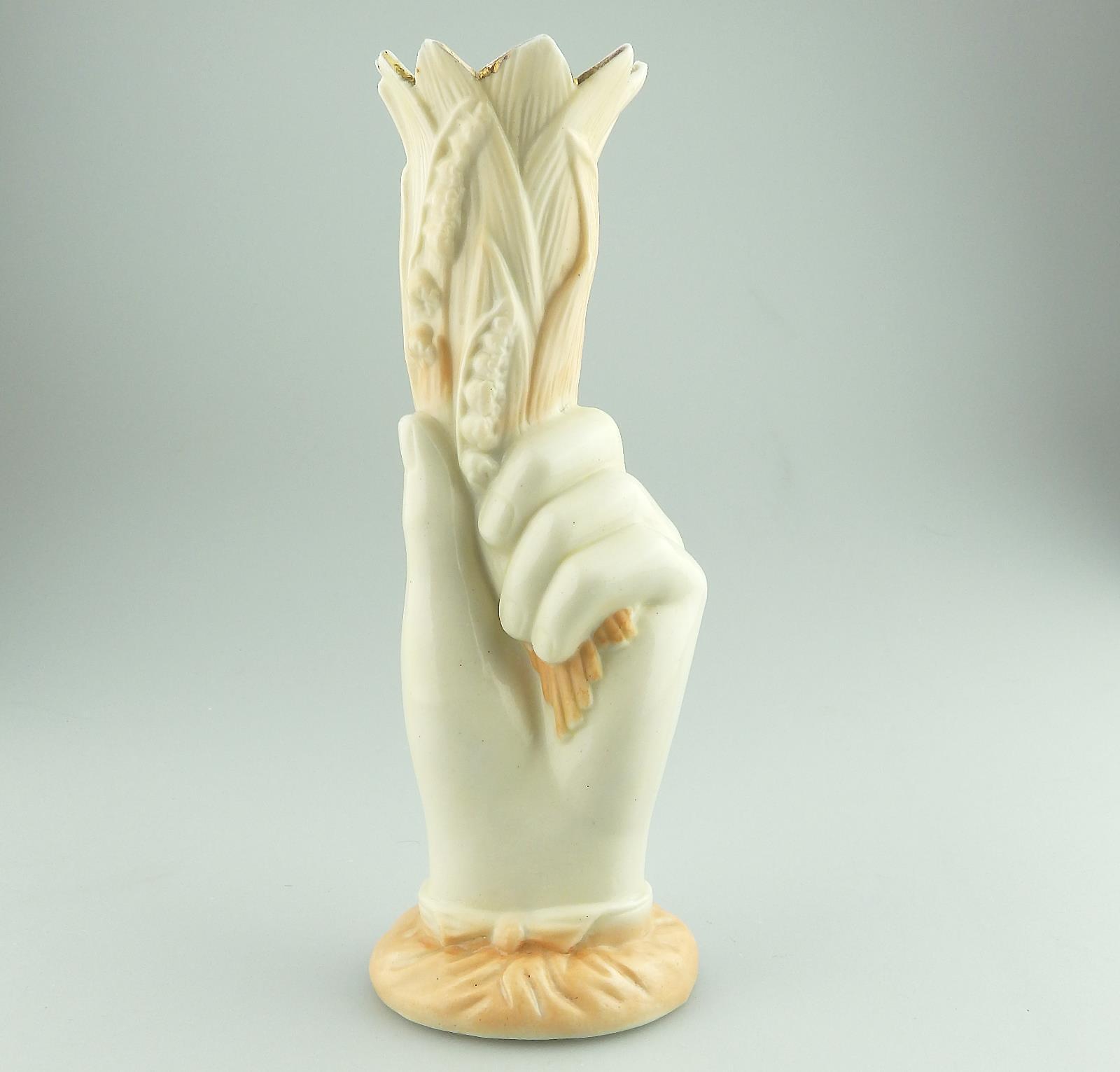 A Continental Porcelain / Parian Novelty Hand Painted Hand Vase 3 C.19thc