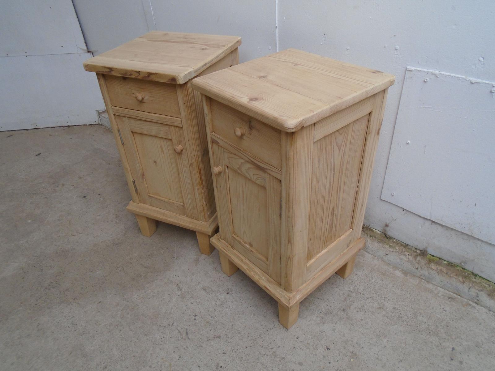 A Cute Pair of Panelled Antique Victorian Pine Bedside Cabinets to Wax / Paint