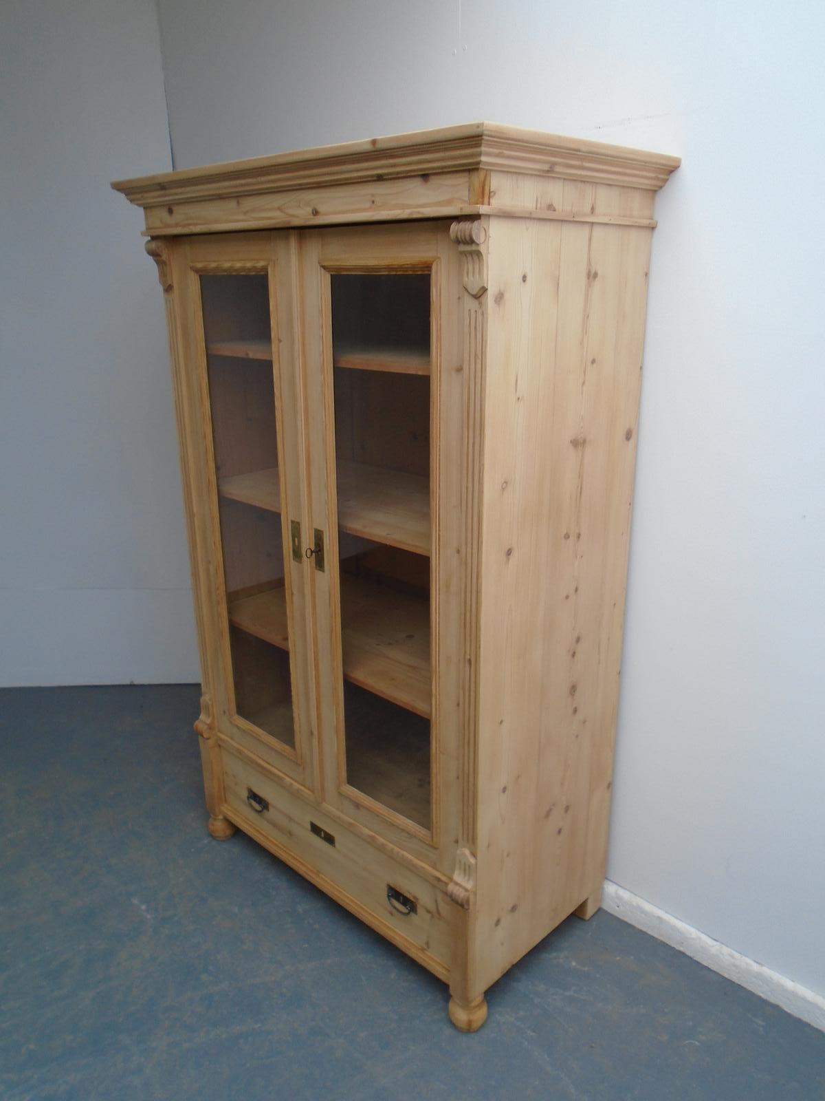 A Deep Victorian Antique / Old Pine 1 Piece Glazed Display Cabinet to Wax/paint