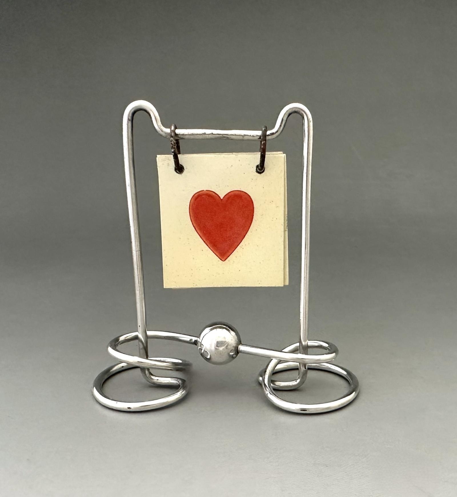 A sought after silver plated trump marker, dating to the early 20th Century. This useful and collectable example has the card suits and "no trumps" marked on double sided celluloid swing cards. The silver plated wirework frame is in the Art Nouveau taste with attractive sinuous lines. A great gift idea for the cards player.