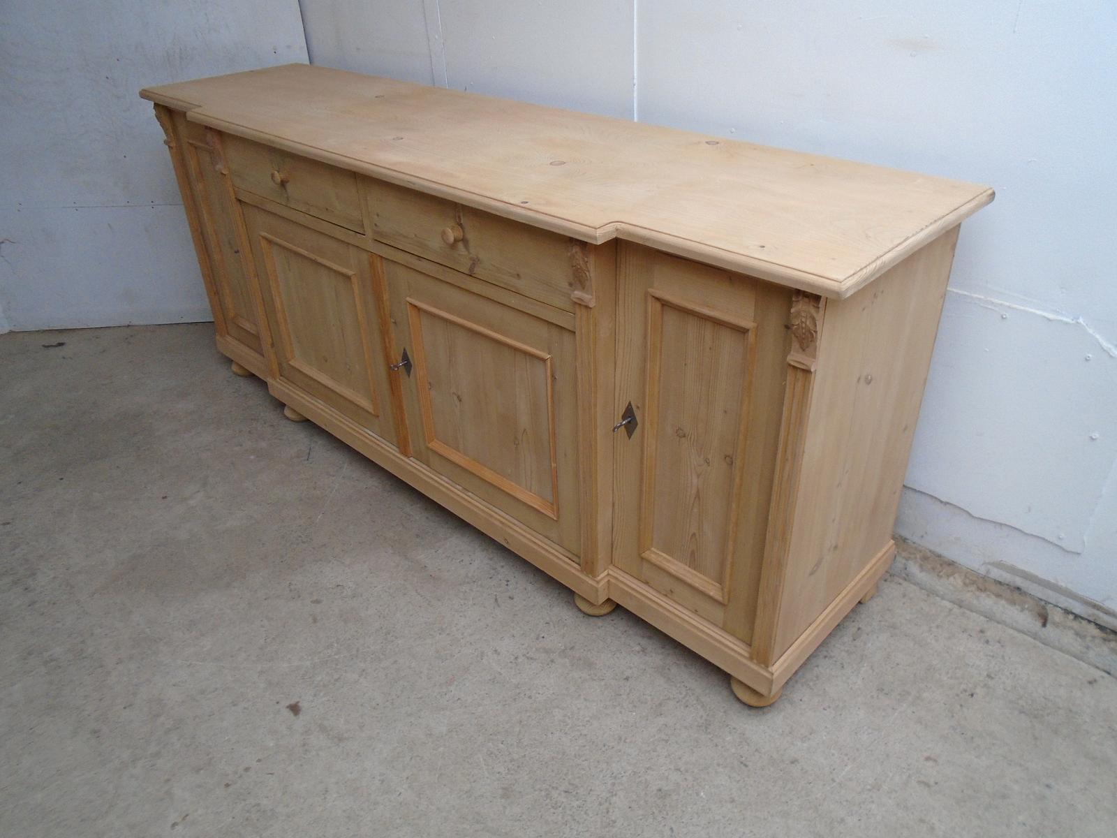A Fab Antique / Old Pine Breakfront 4 Door Dresser Base / TV Stand to Wax /Paint