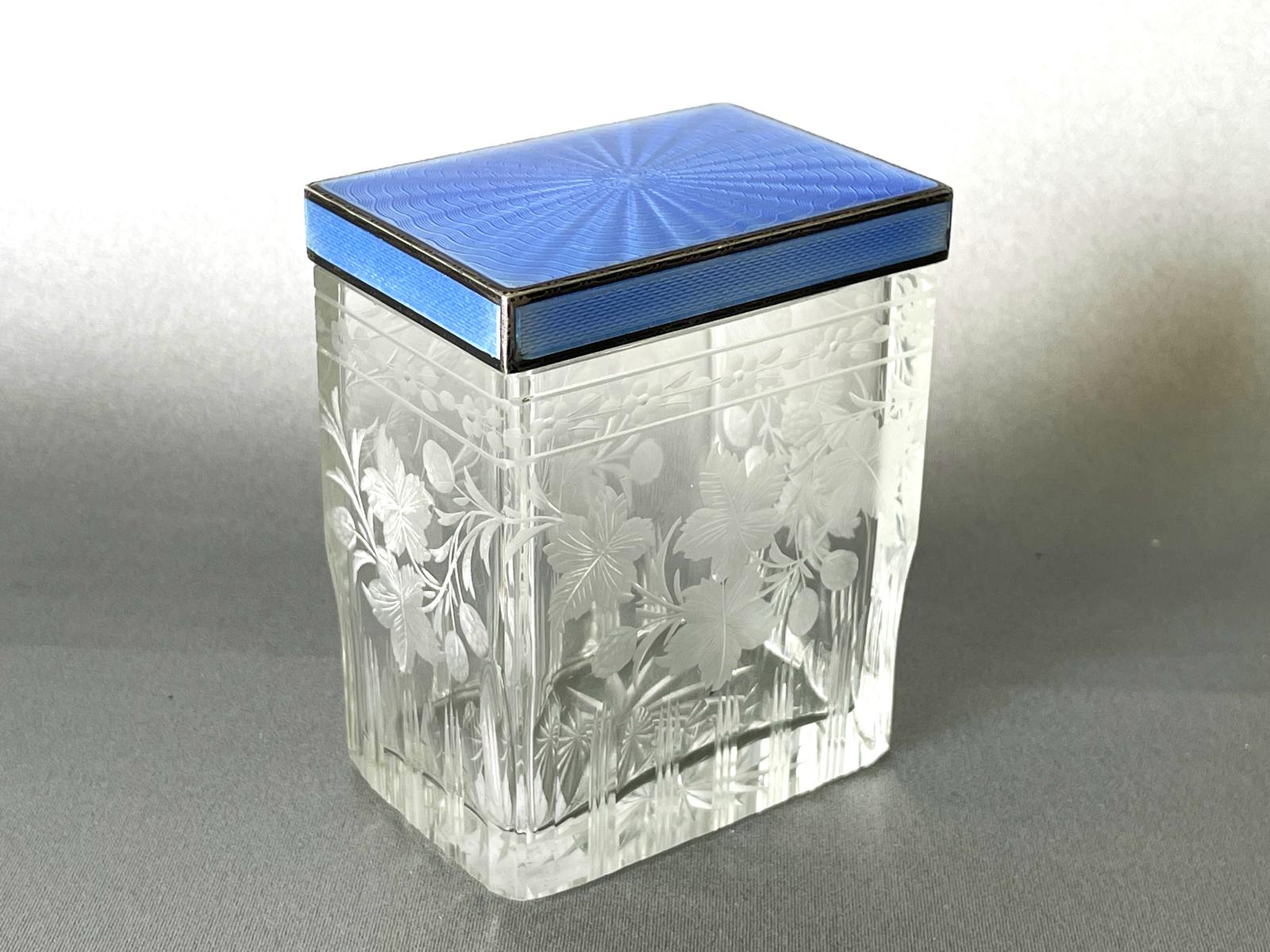 A Fabulous Silver & Guilloche Enamel Topped Vanity Bottle