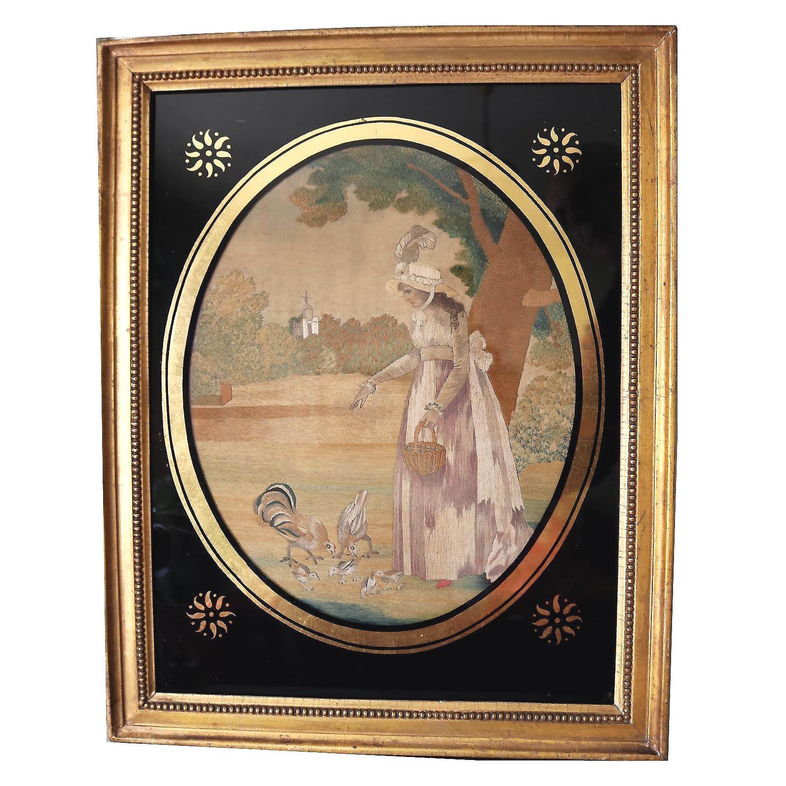 A Fine Antique Georgian Silk Embroidery & Watercolour Pastoral Picture C.1790
