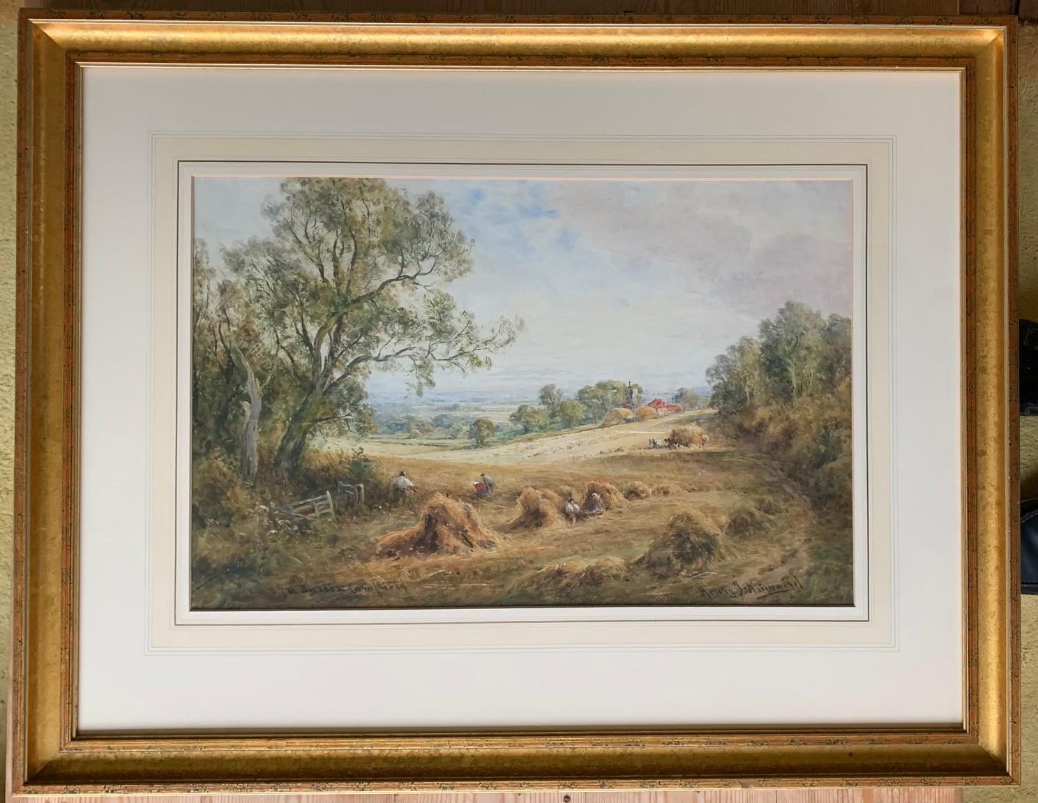 A Fine Antique Watercolour by Henry J Kinnaird 'Sussex Cornfield' Circa 1900