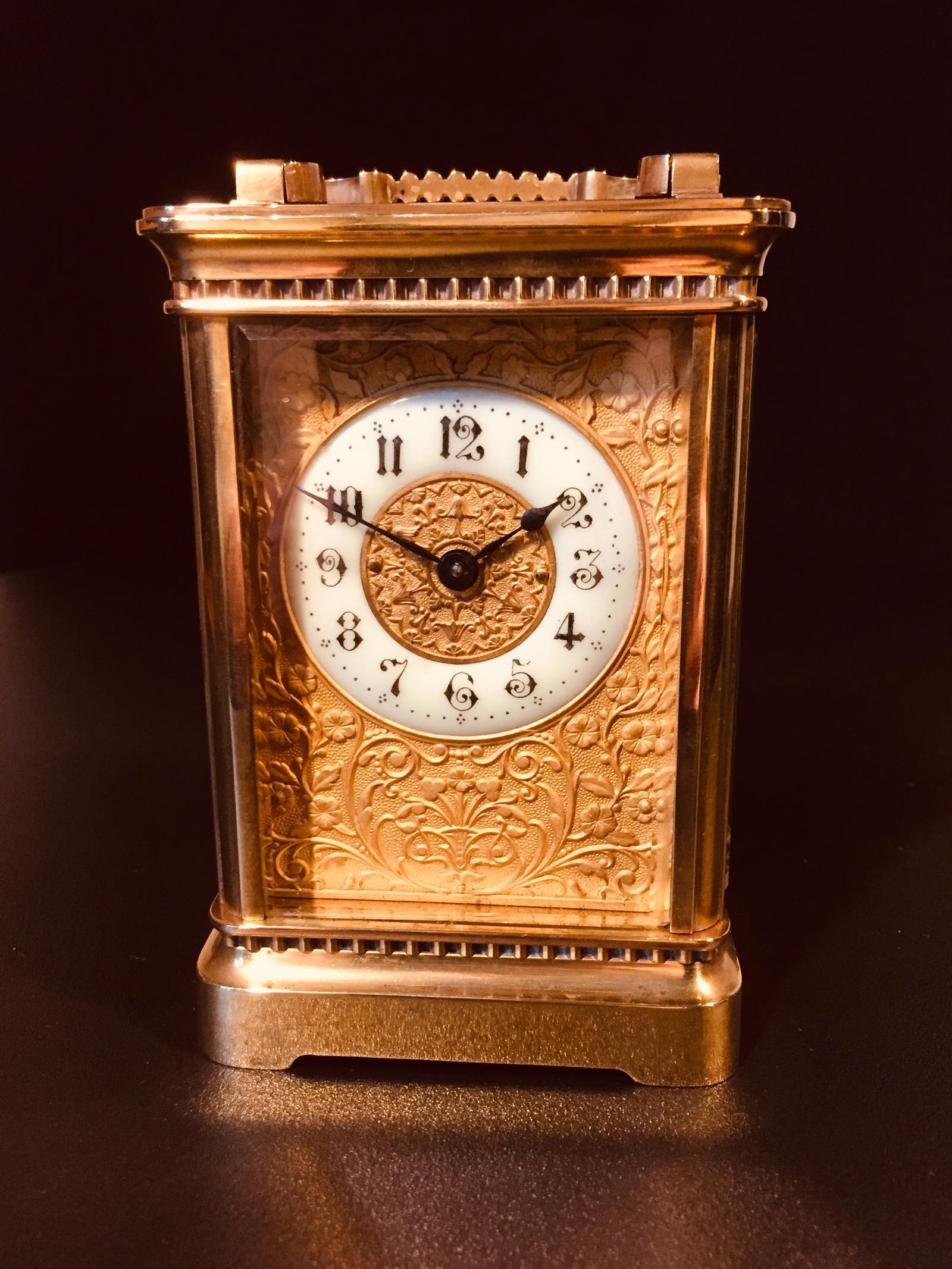 A Fine Gilt Faced Late 19th Century French Carriage Clock