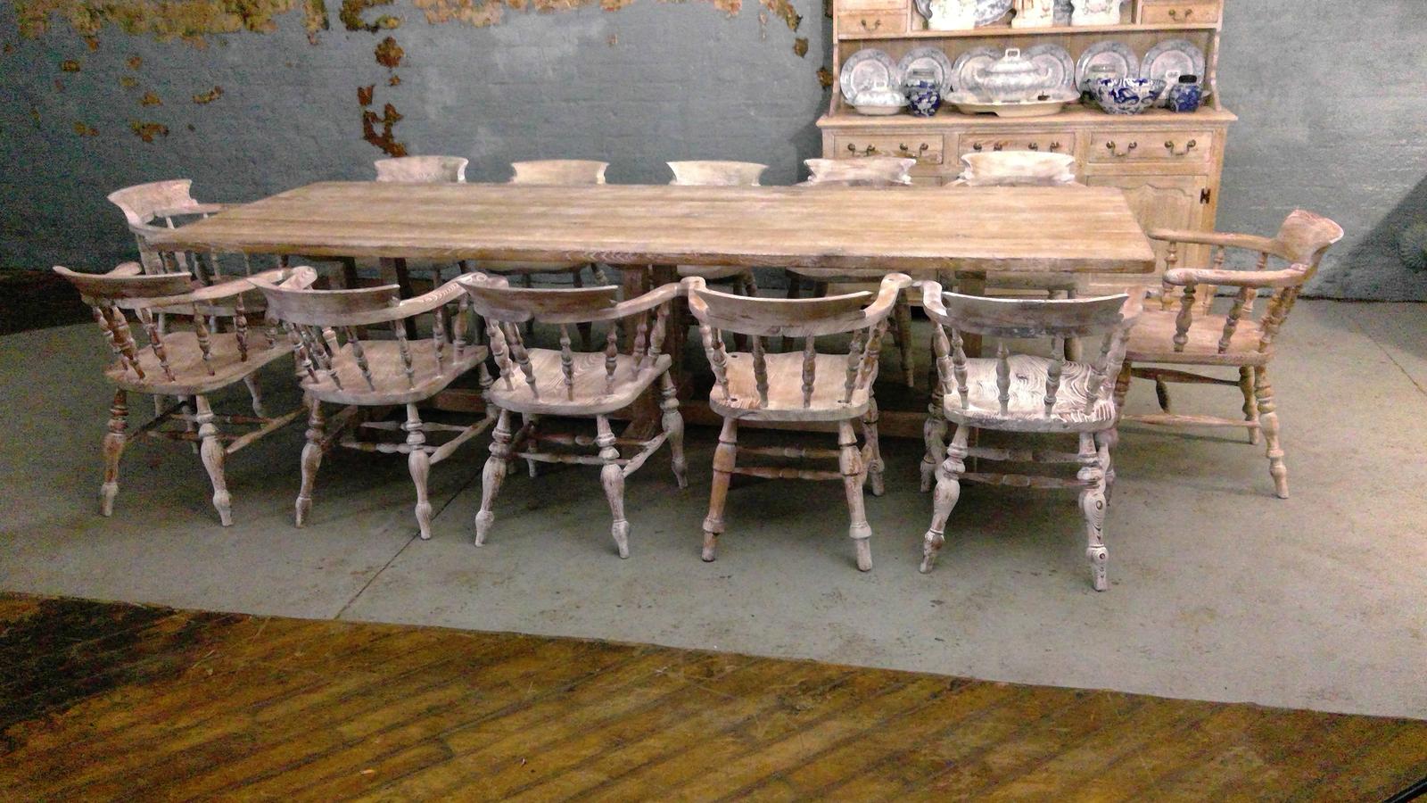 a Fine Set of 12 Victorian Limed Finished Captain Chairs