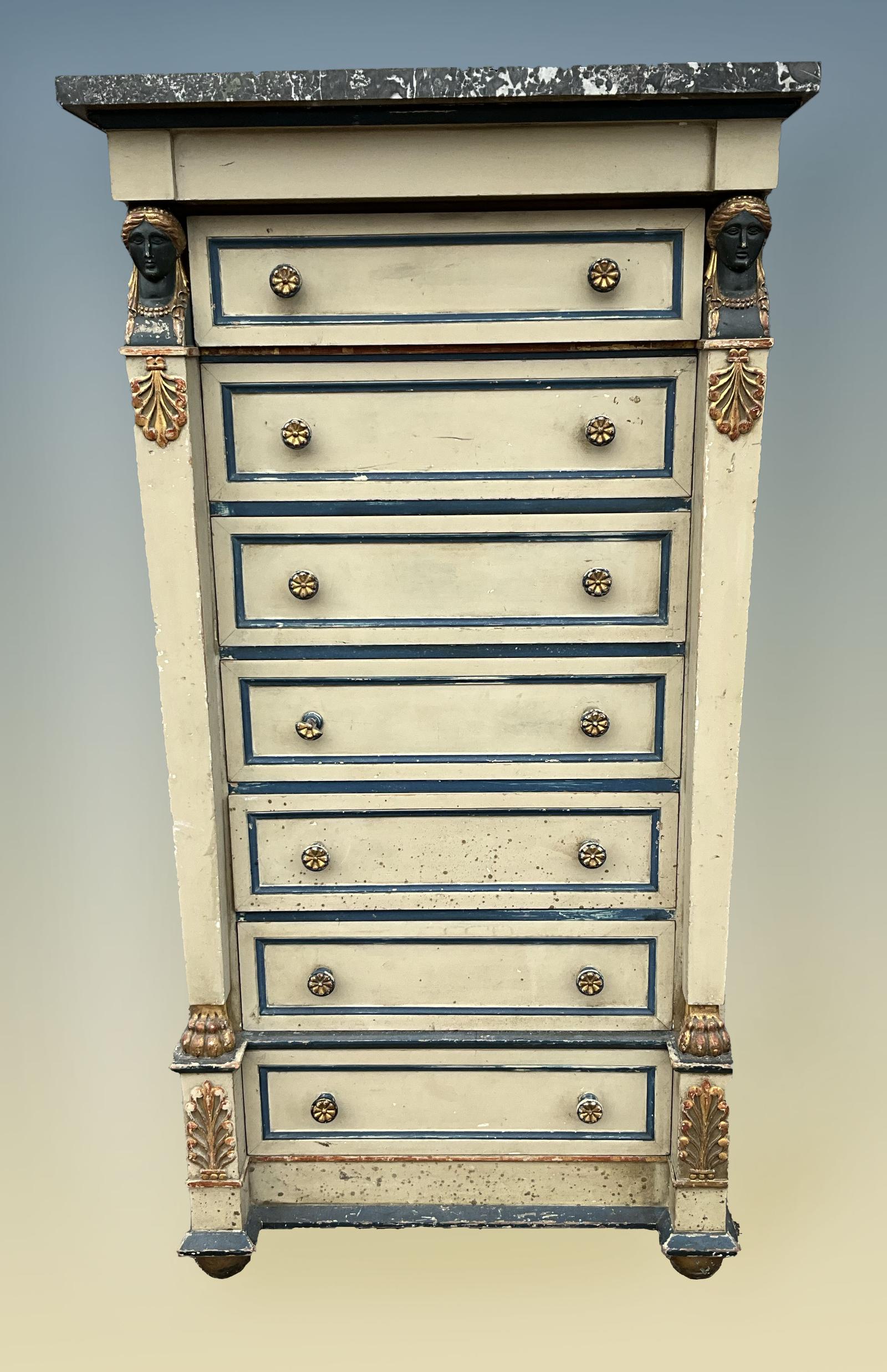 A French Empire Style Hand Painted Wellington Chest with Marble Top. (1 of 9)
