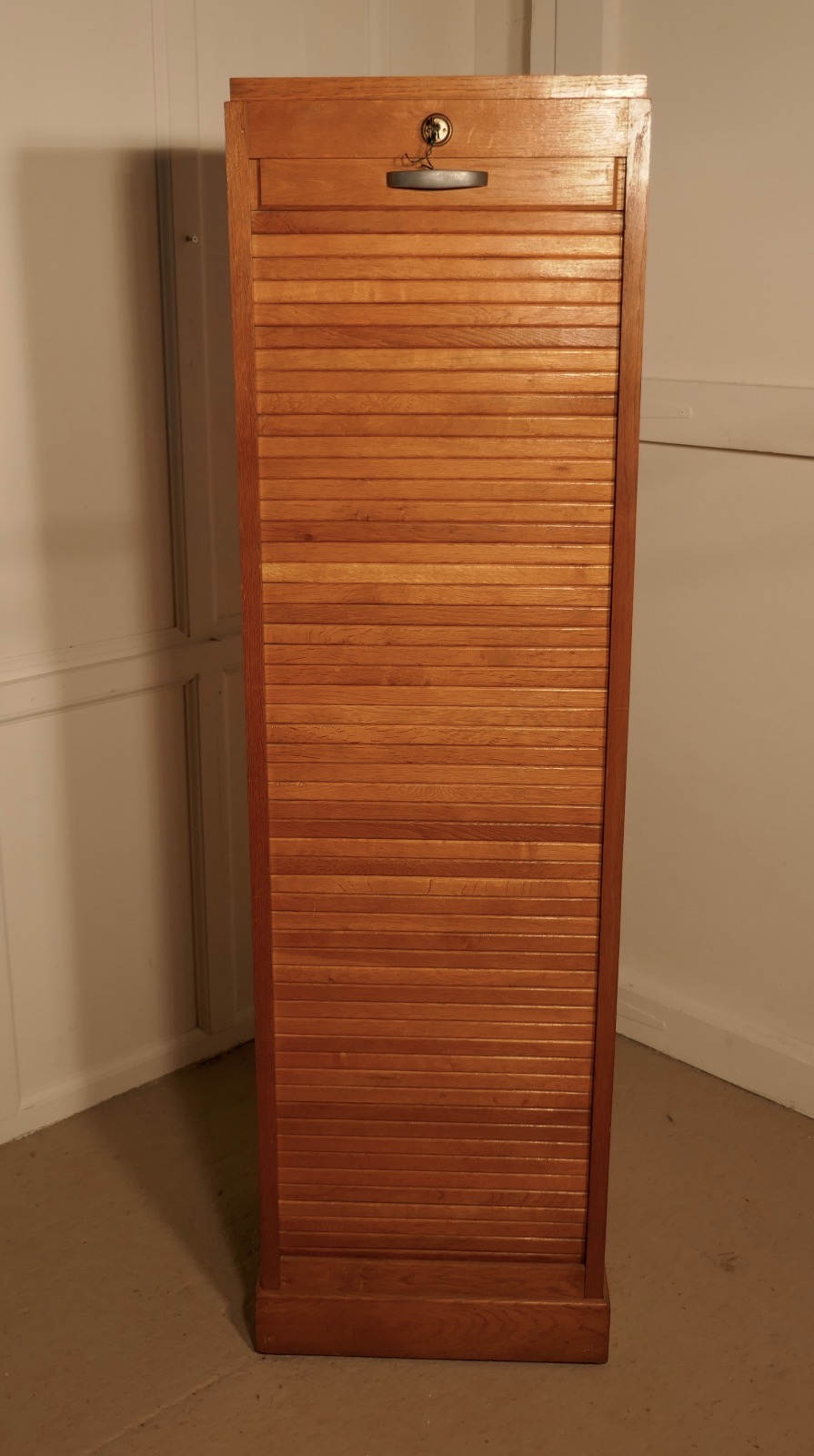 A French Tambour Fronted Oak Art Deco Filing Cabinet