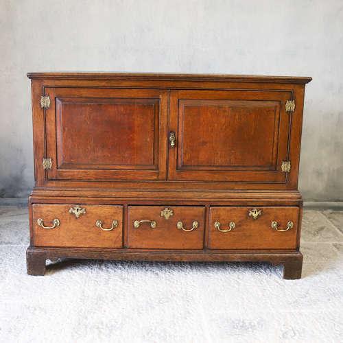 A George III Oak Mule Chest Converted to 2 Door Cupboard Over Drawers