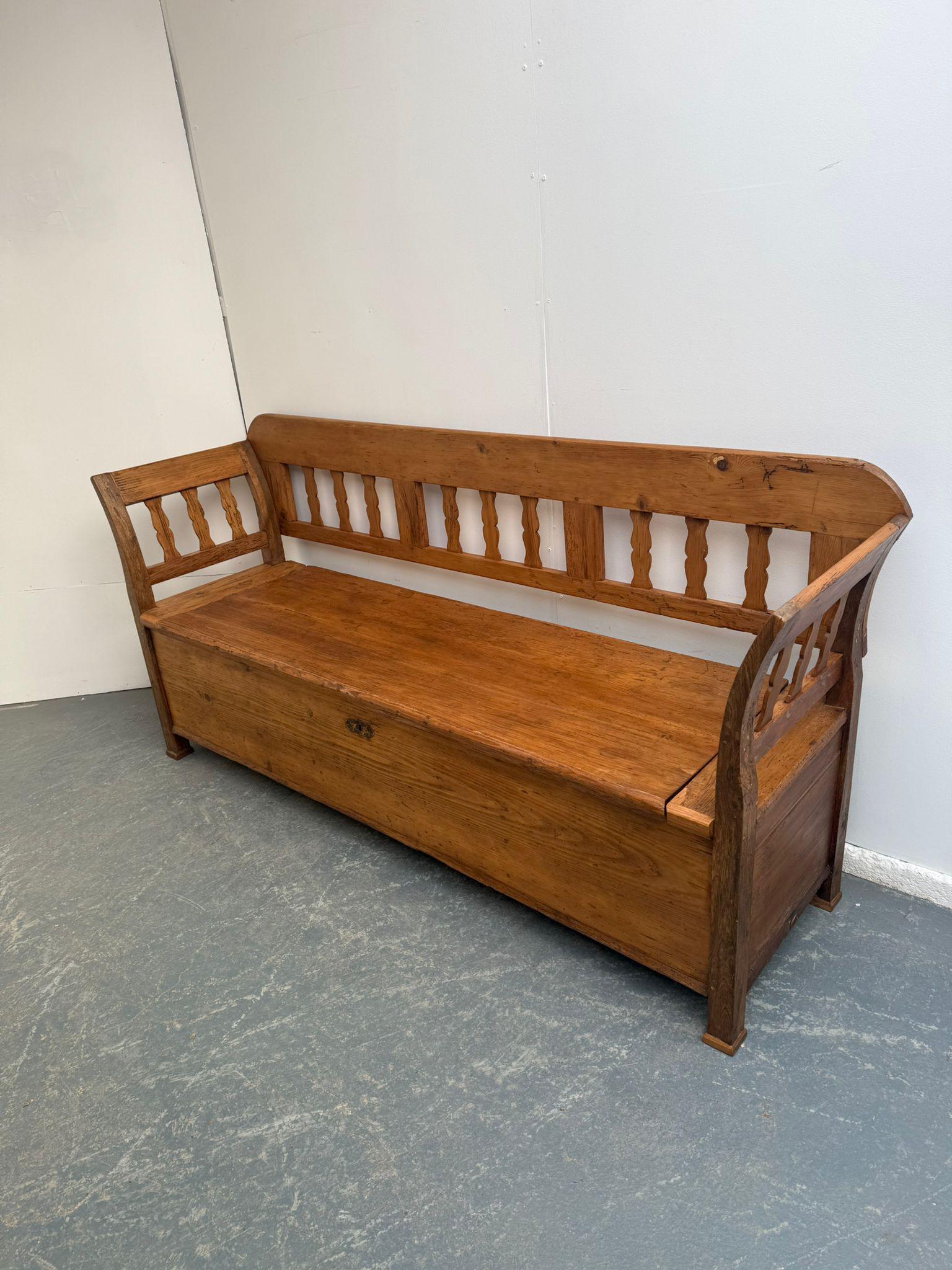 A Georgian Hungarian Antique / Old Pine Waxed 3 Seater Box Settle / Bench