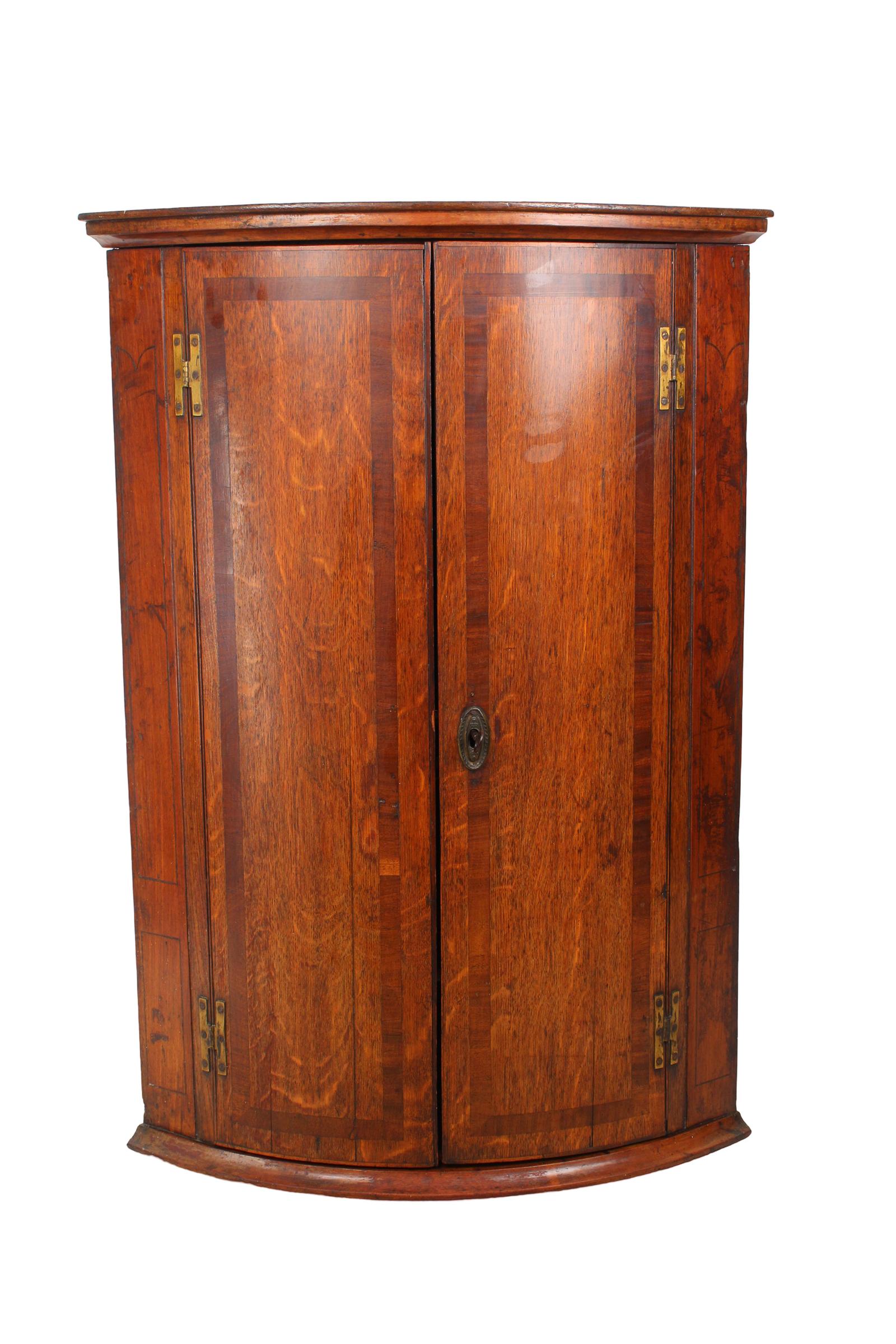 A Georgian Oak Bow Front Corner Cupboard