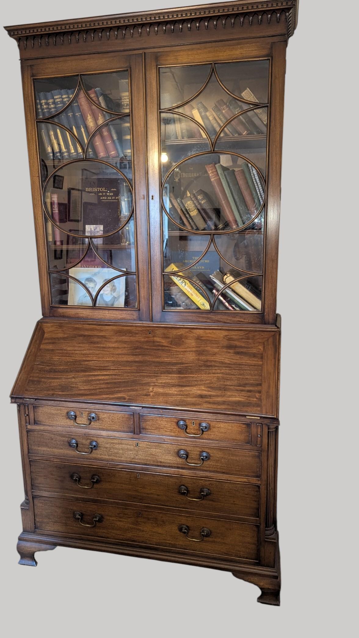 This A Georgian Style Mahogany Bureau Bookcase is located in Wiltshire, United Kingdom