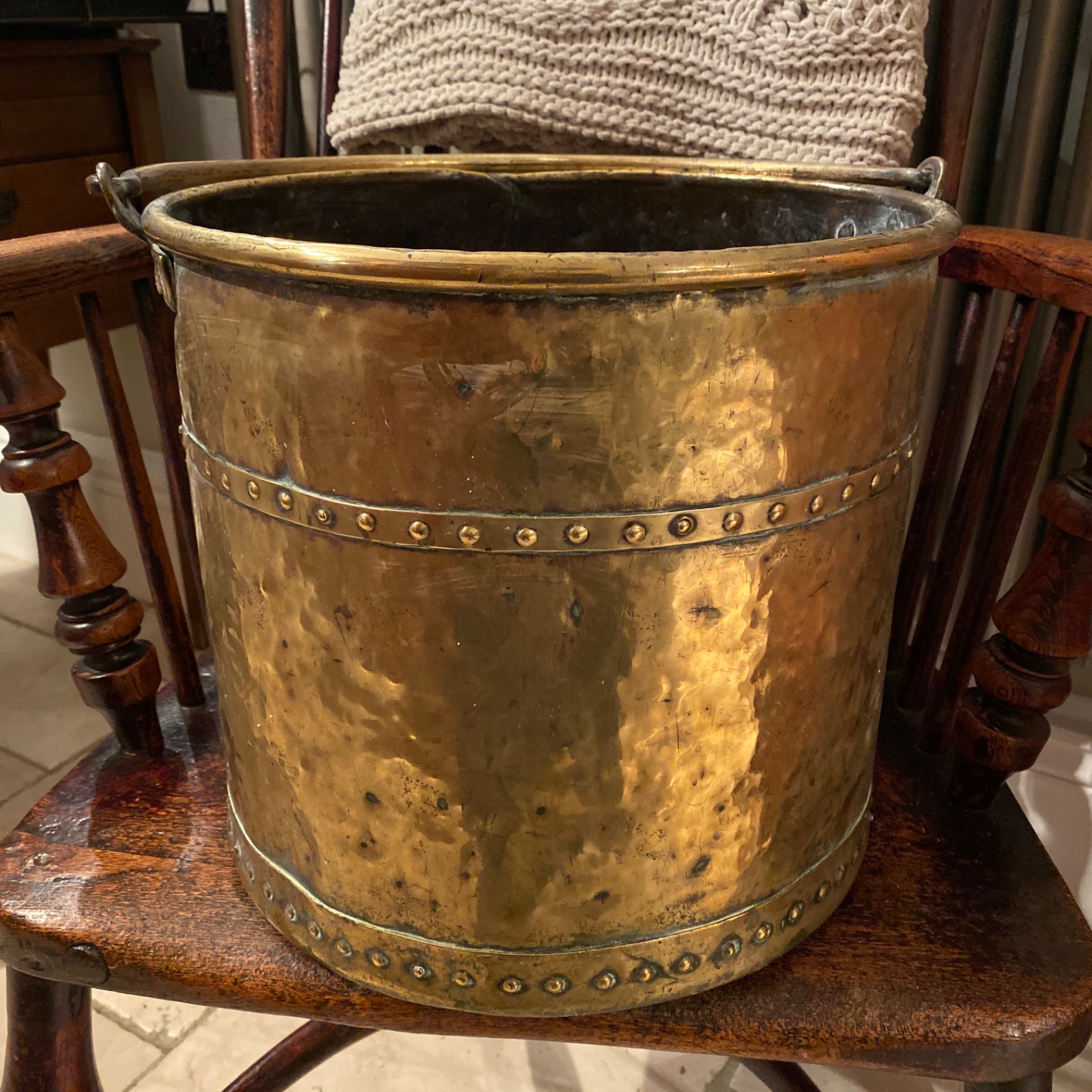 A Good Georgian Brass Copper Riveted Log Coal Bucket / Jardiniere