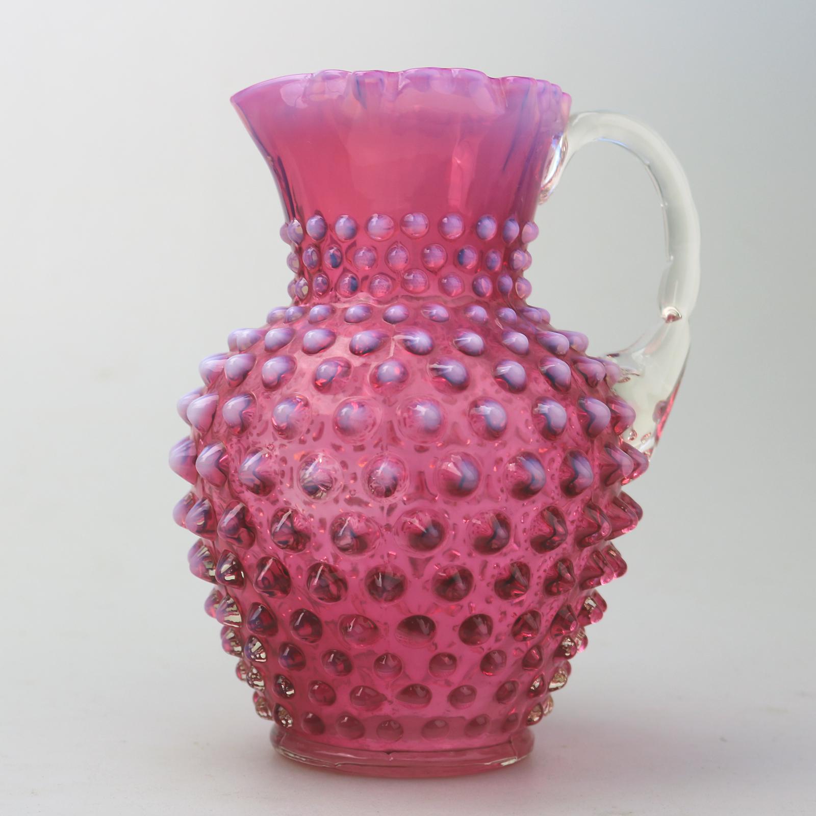 A Good Large Novelty Cranberry & Vaseline Jug Probably Fenton C.early 20th
