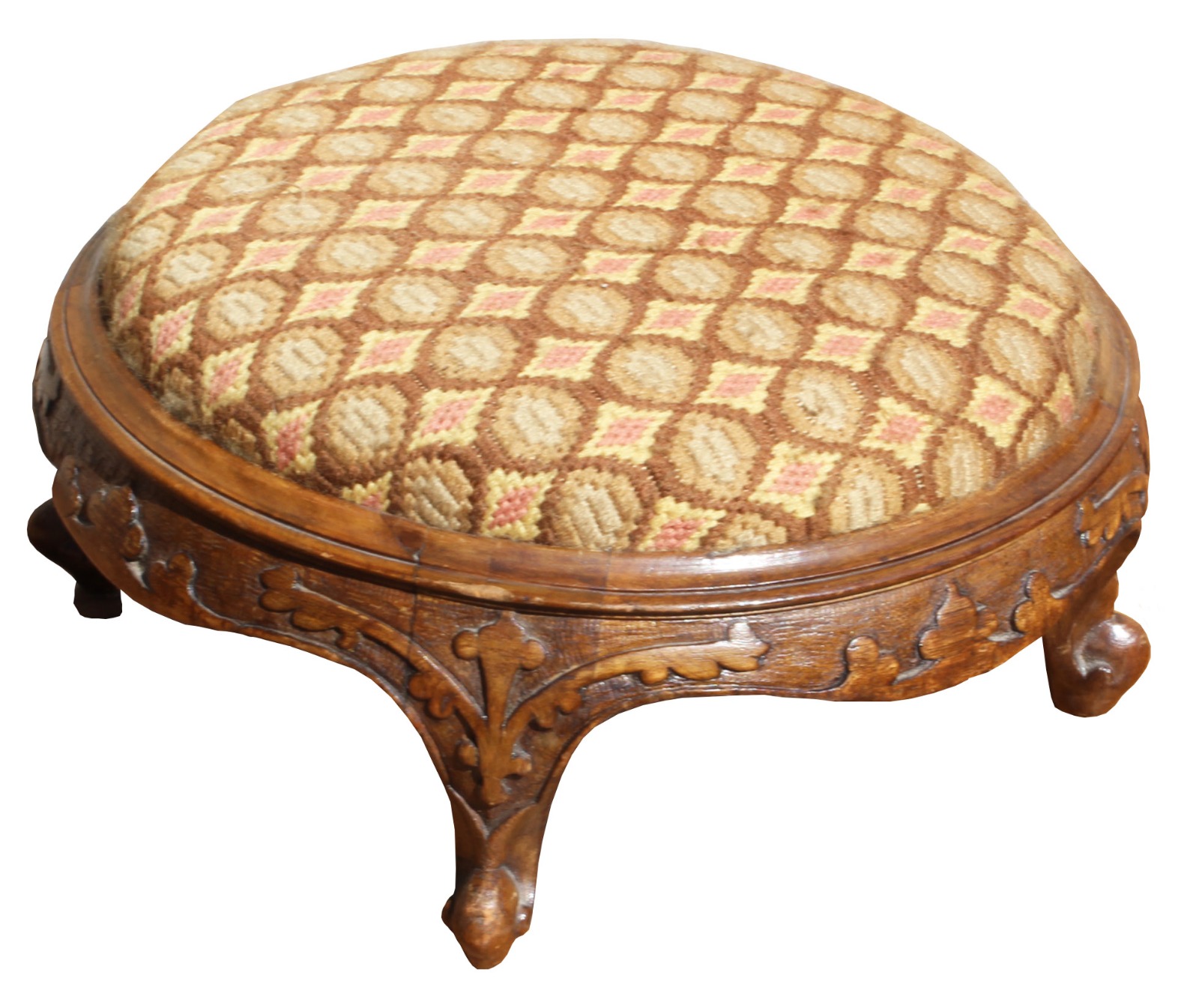 A Good Quality Circular Victorian Walnut Footstool.