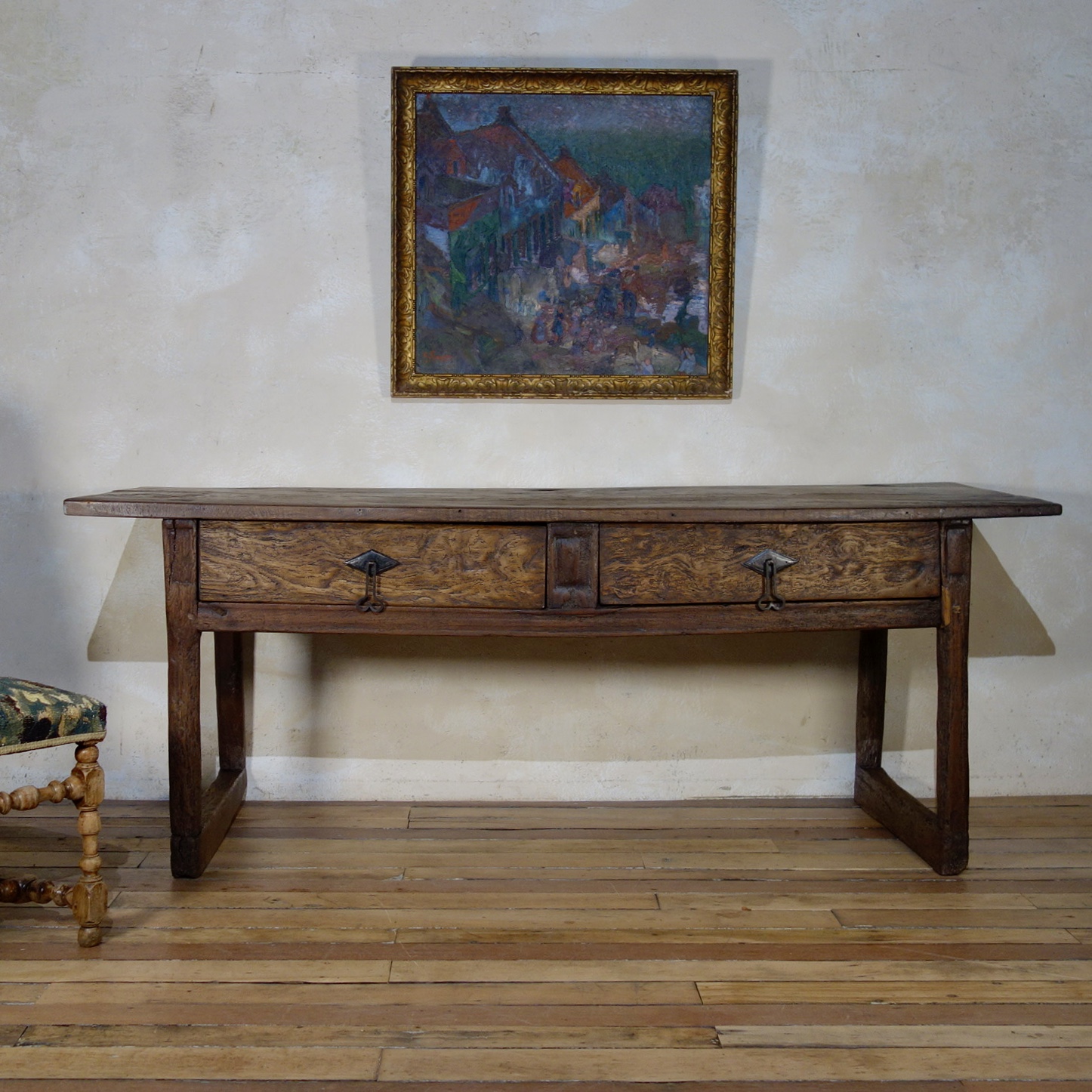 A Large 17th Century Spanish Chestnut Console Serving - Prep Table