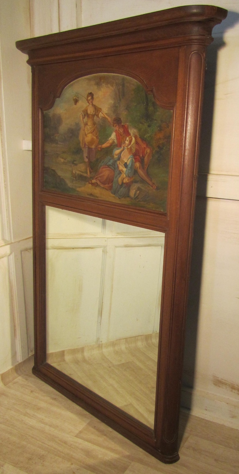 A Large 19th Century French Oak Trumeau Mirror, Oil on Canvas