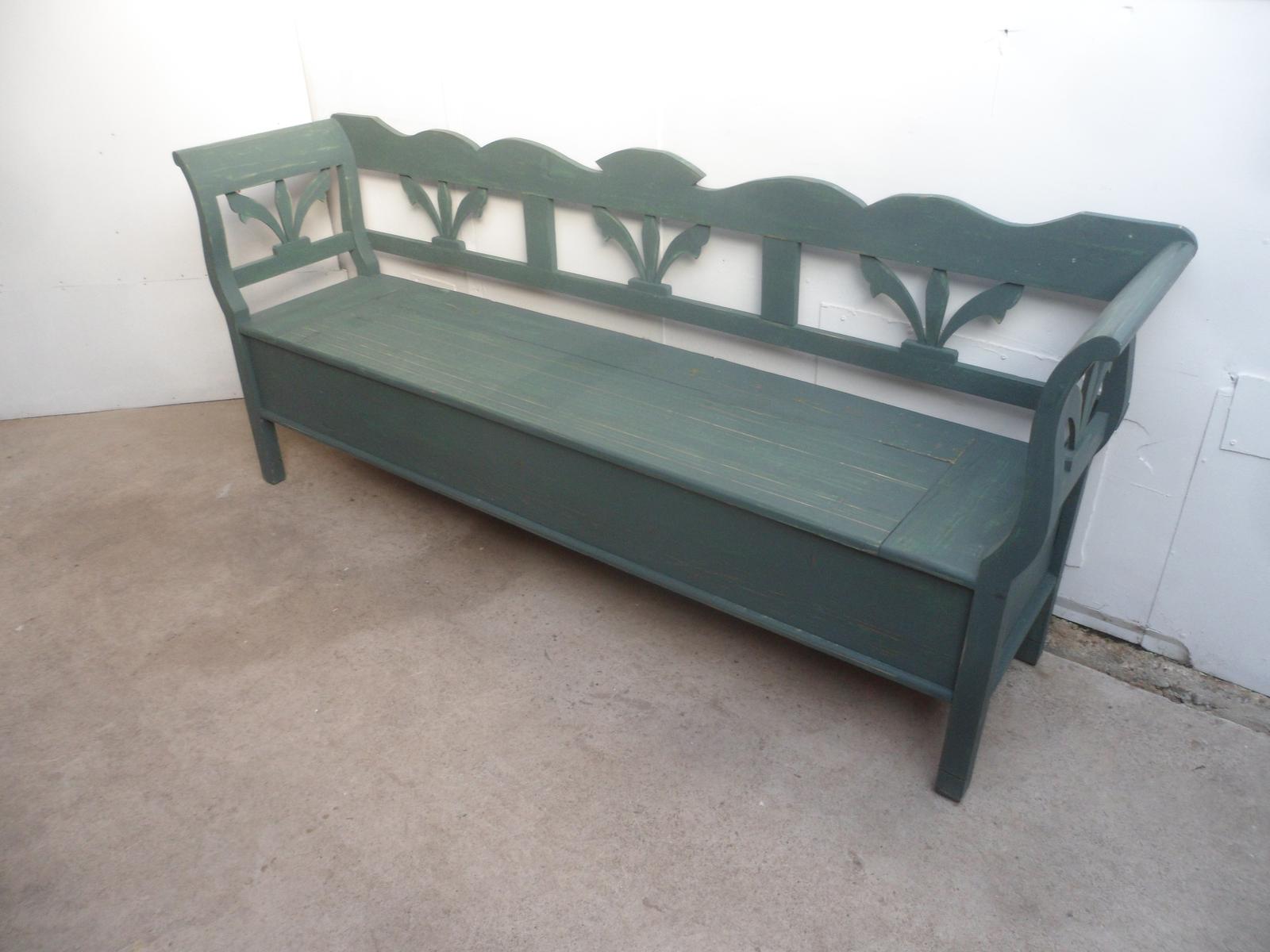 A Large 4 Seater Emerald Green Antique/Old Pine Kitchen/Hall Box Settle / Bench