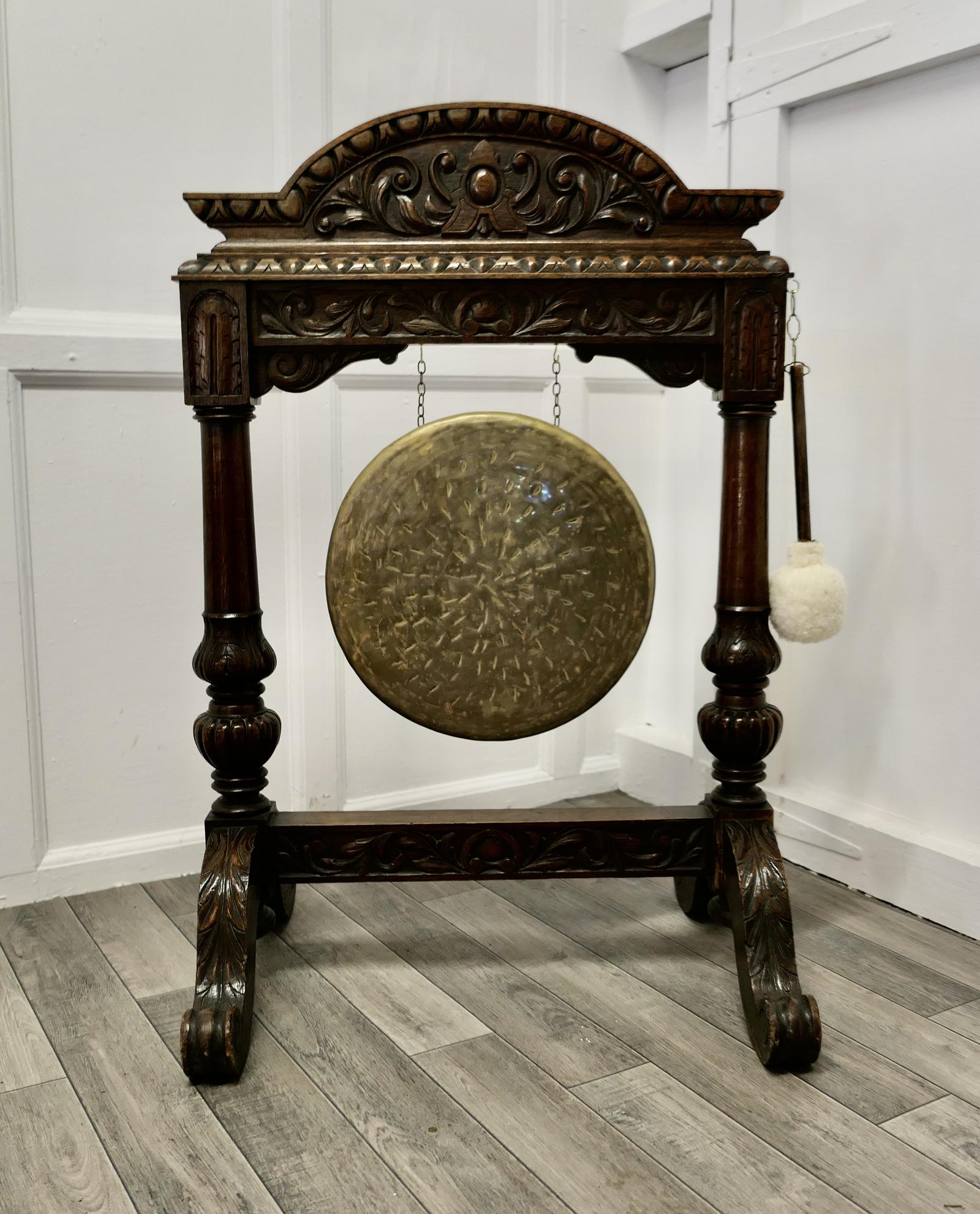 A Large Gothic Carved Oak and Brass Dinner Gong