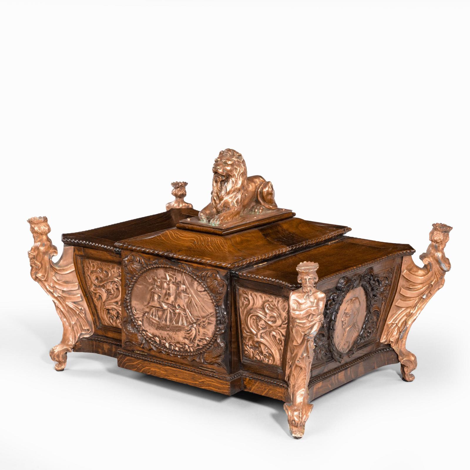 A large ornamental casket made from the oak and copper of HMS Foudroyant, Nelson’s flagship 1799-1801