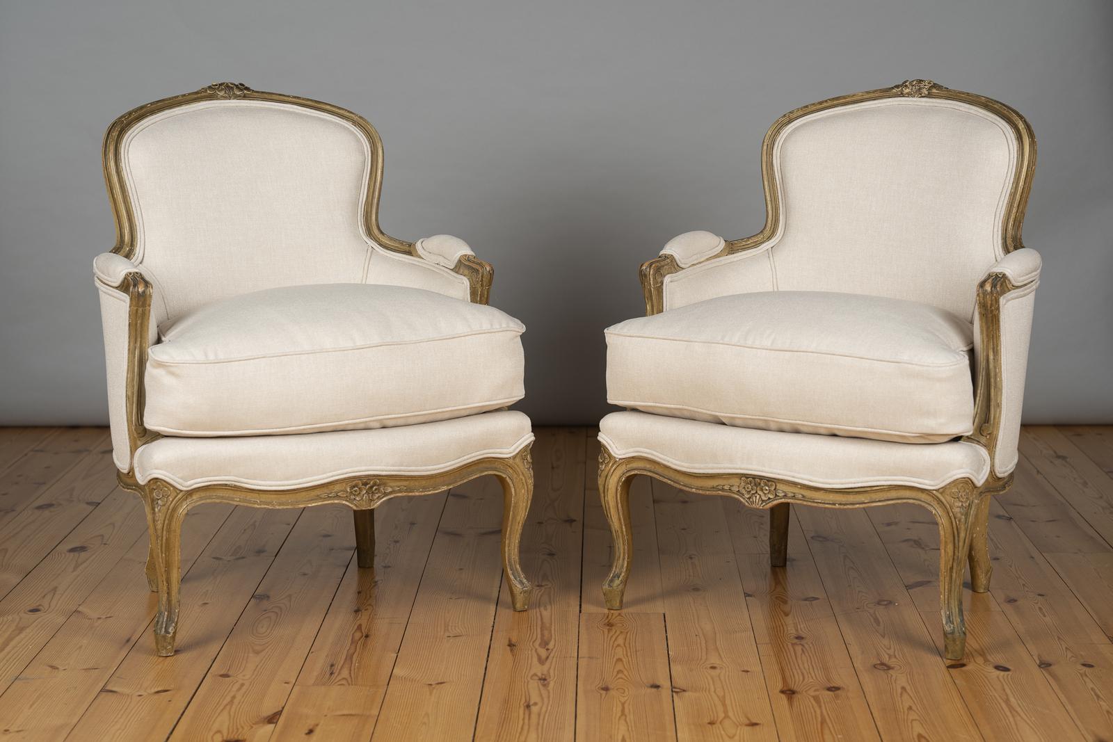 A Large Pair Of French Louis XV Style Painted Bergere Armchairs (1 of 9)