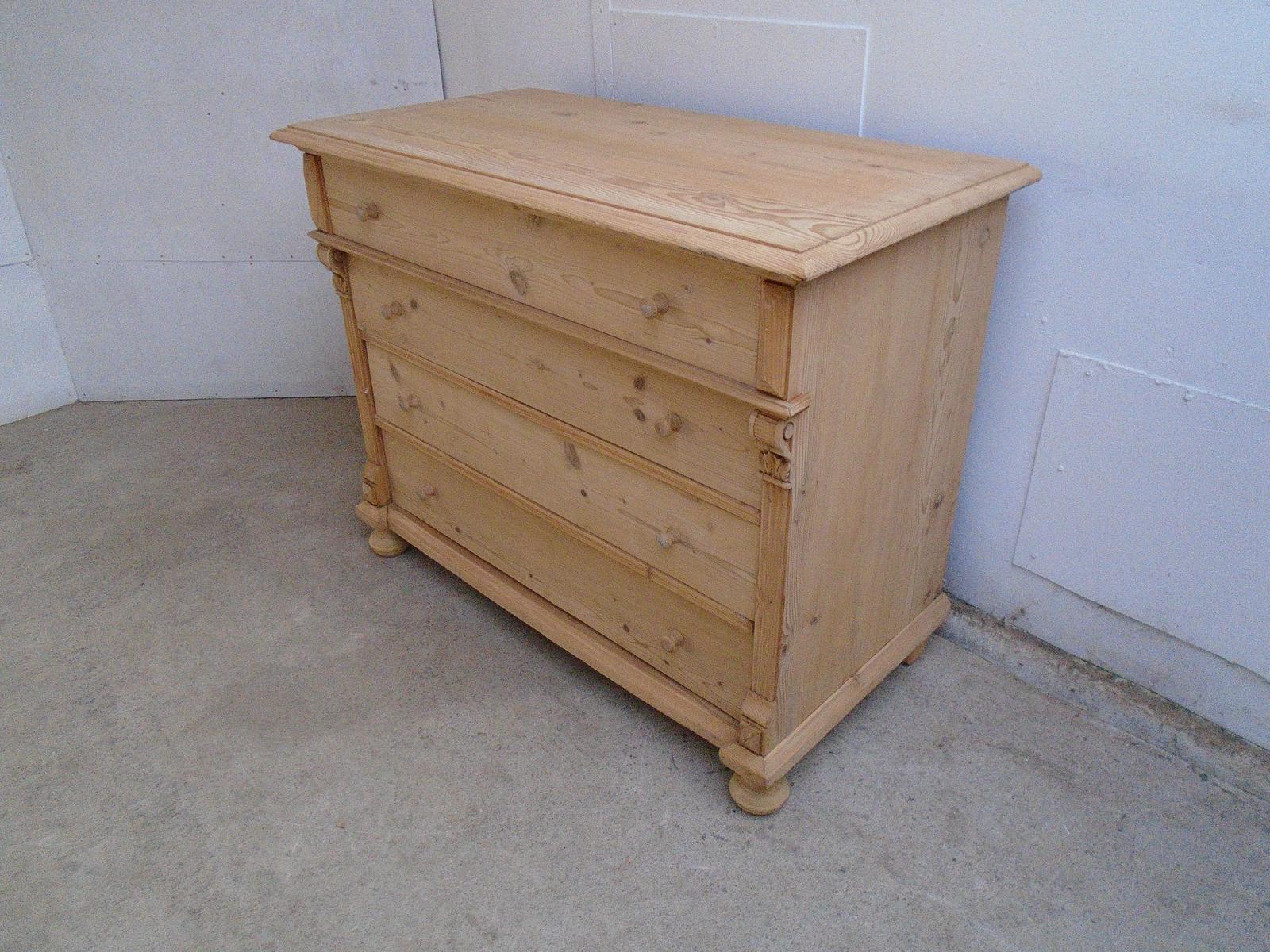 A Large Victorian Antique Pine 4 Drawer Chest of Drawers to Wax / Paint