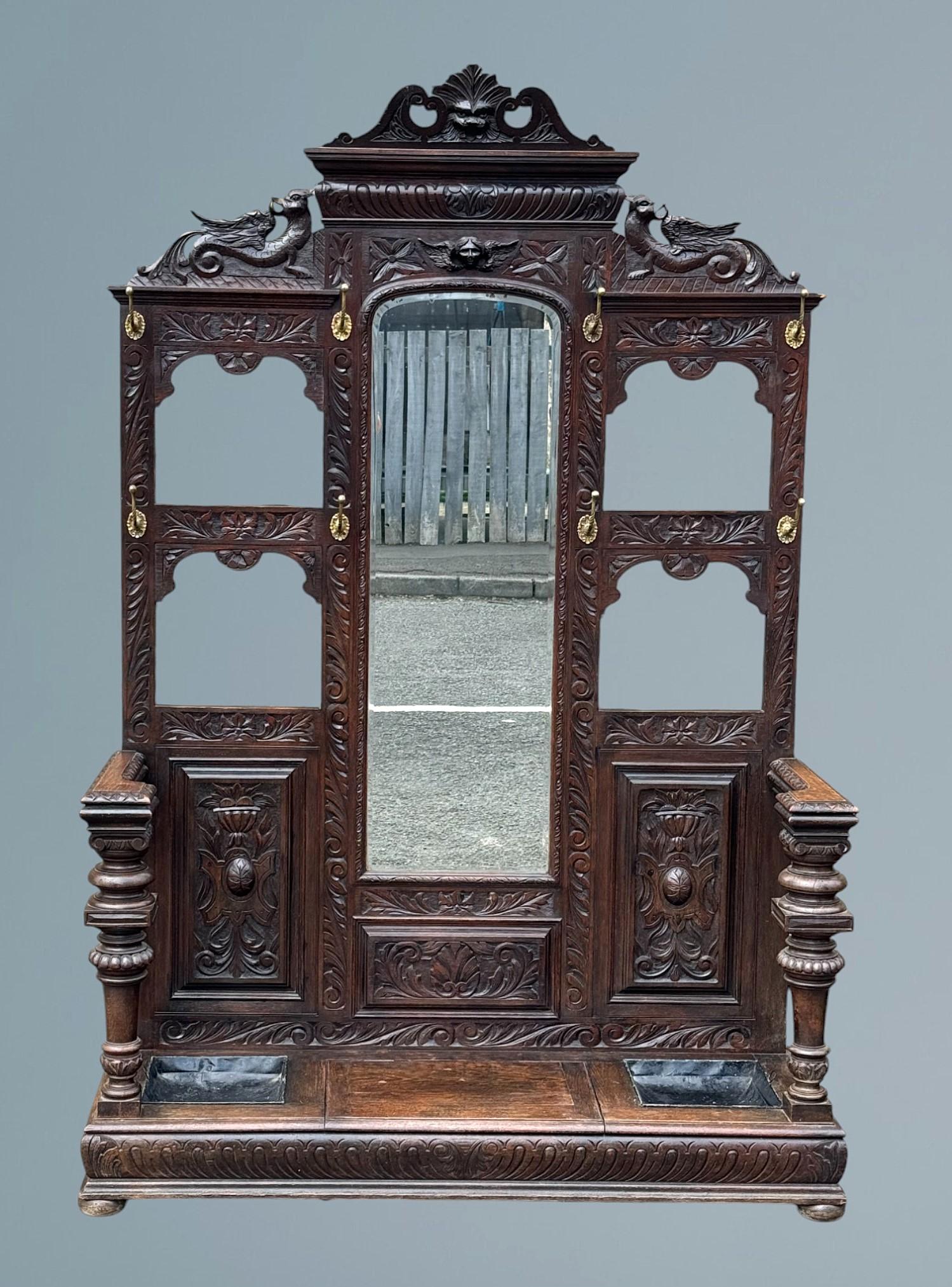 A Large Victorian Carved Oak Country House Hallstand