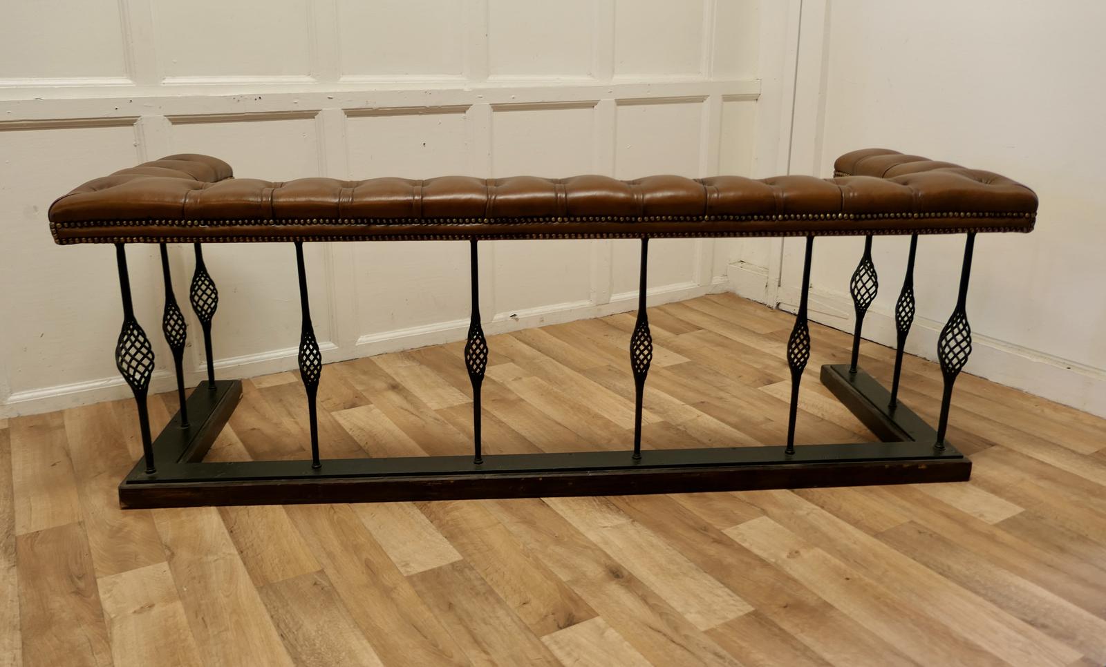 A Large Wrought Iron and Leather Club Fender