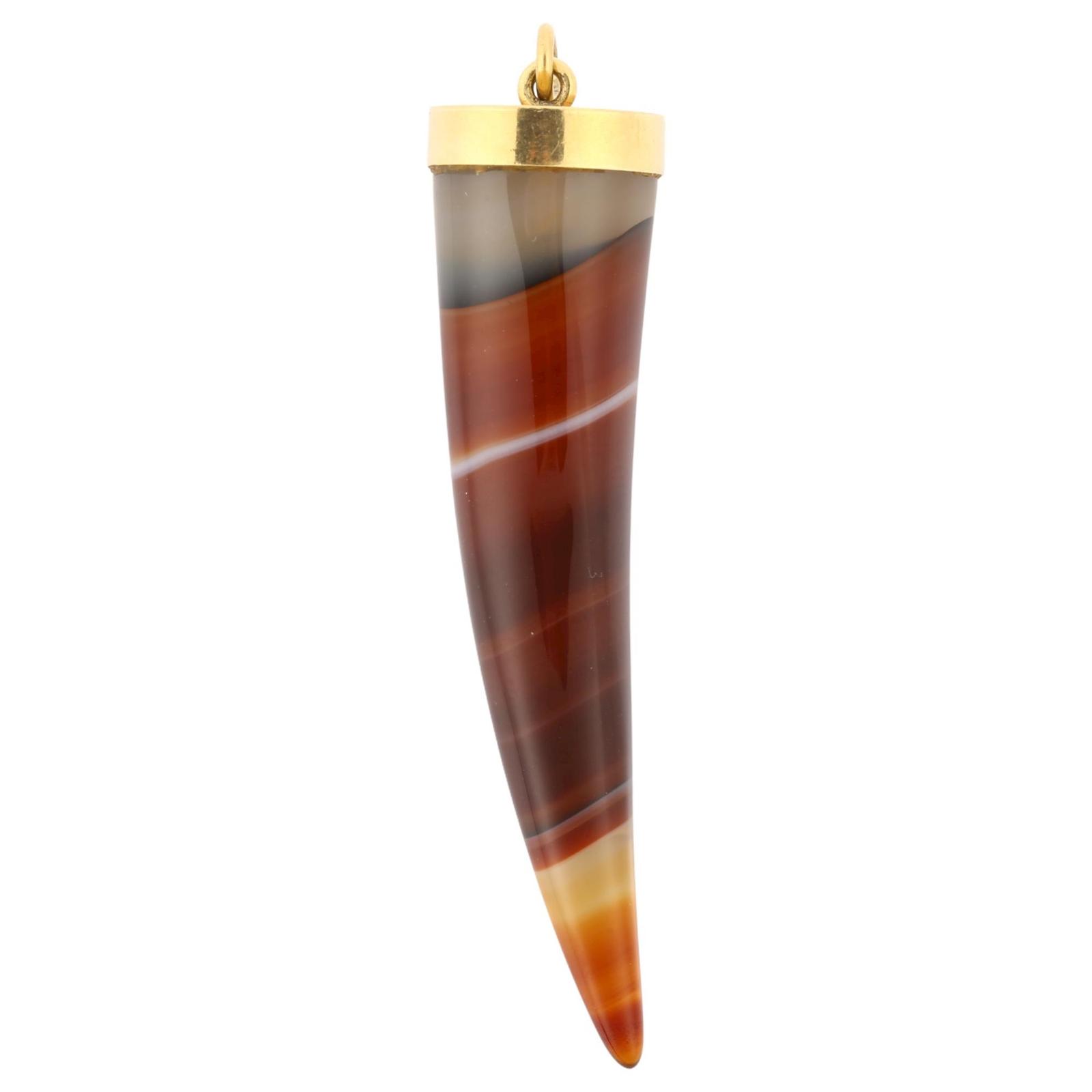 A Late 20th Century Banded Agate Tooth Pendant