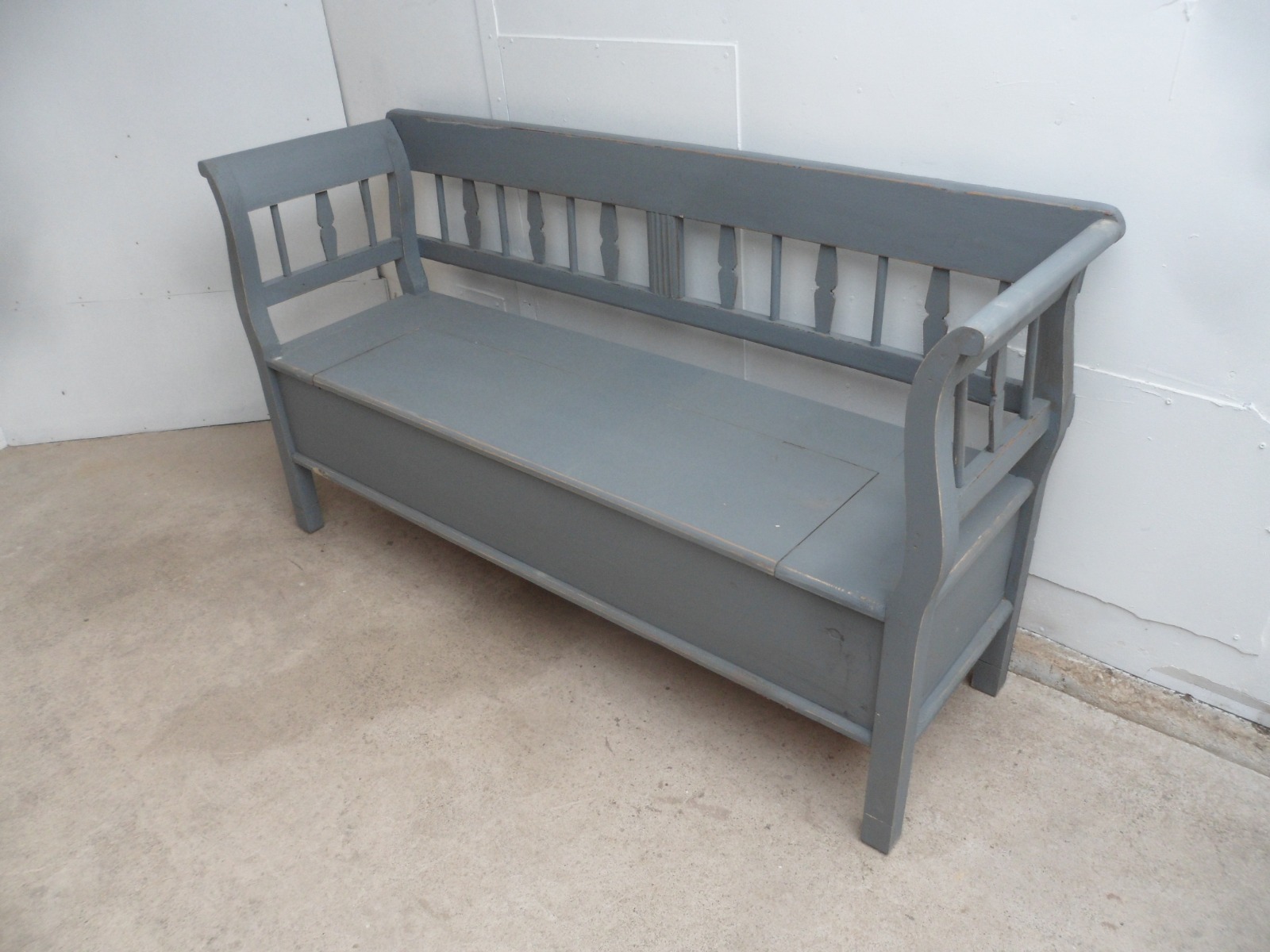 A Light Grey Small Painted Antique/Old Pine Hall/Kitchen Box/Settle/Bench