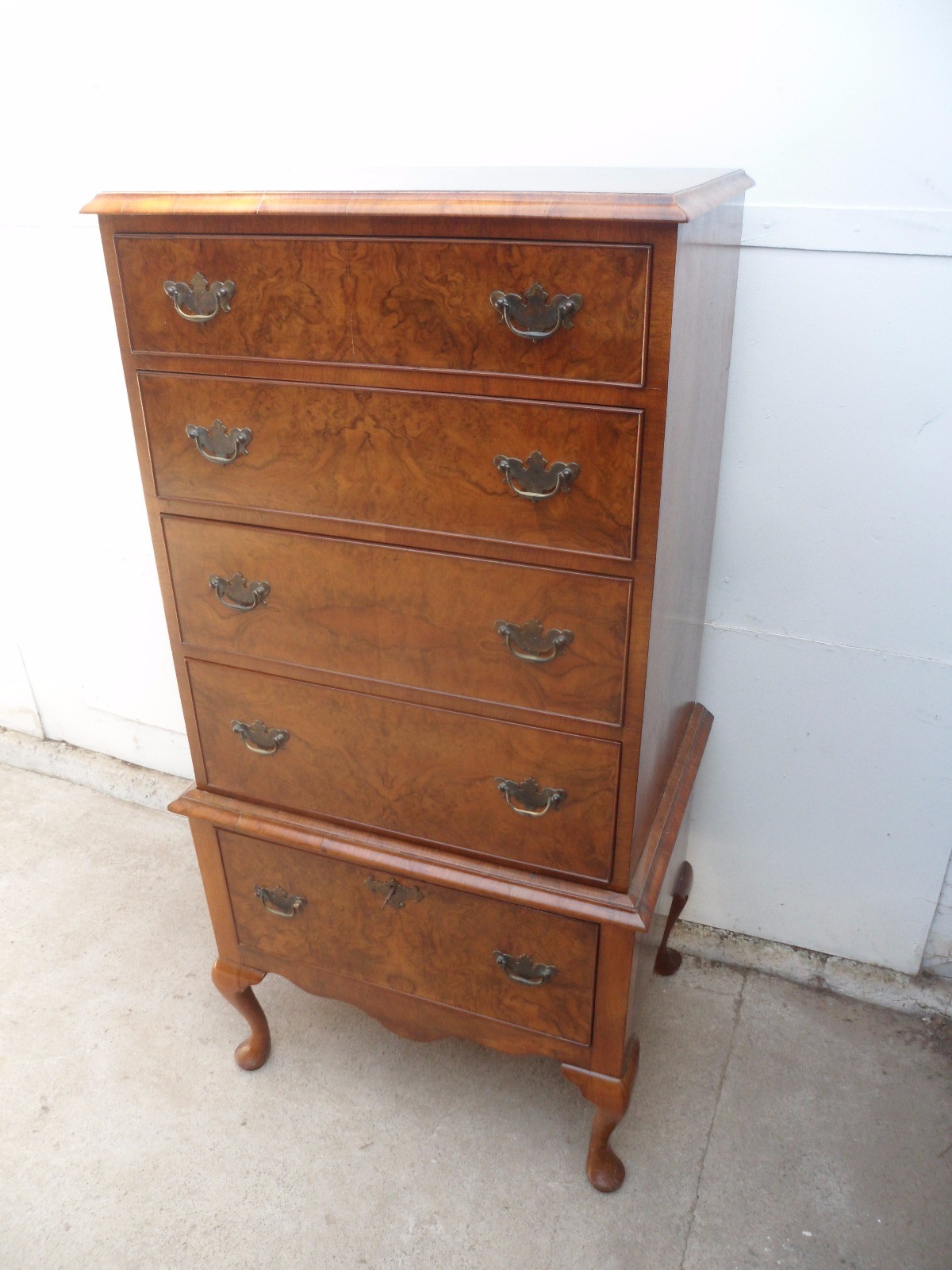 A Lovely 2 Piece Burr Walnut 5 Drawer Art Deco Chest of Drawers
