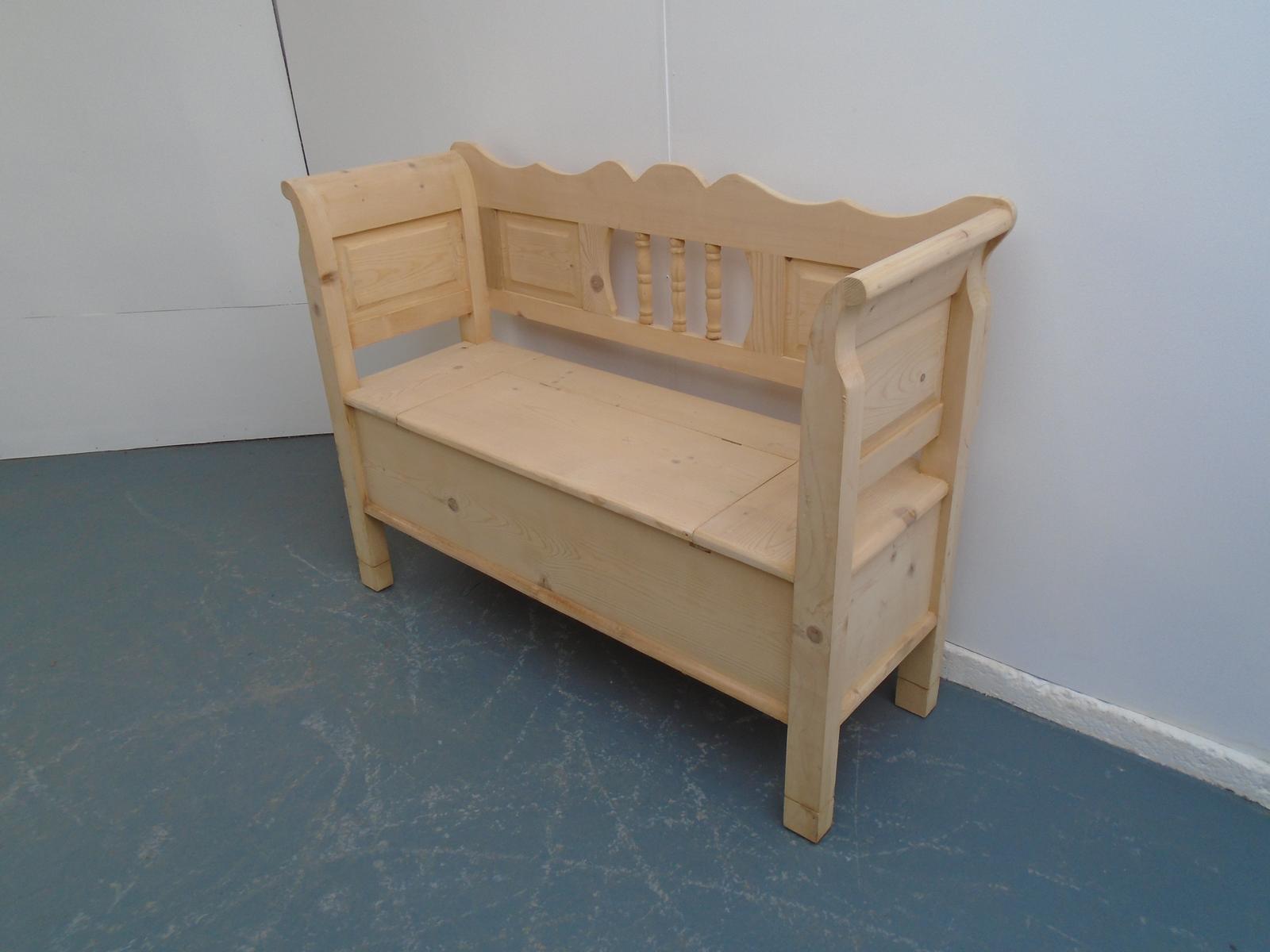A Lovely 2 Seater Pine Panelled Box Settle / Bench to Wax / Paint