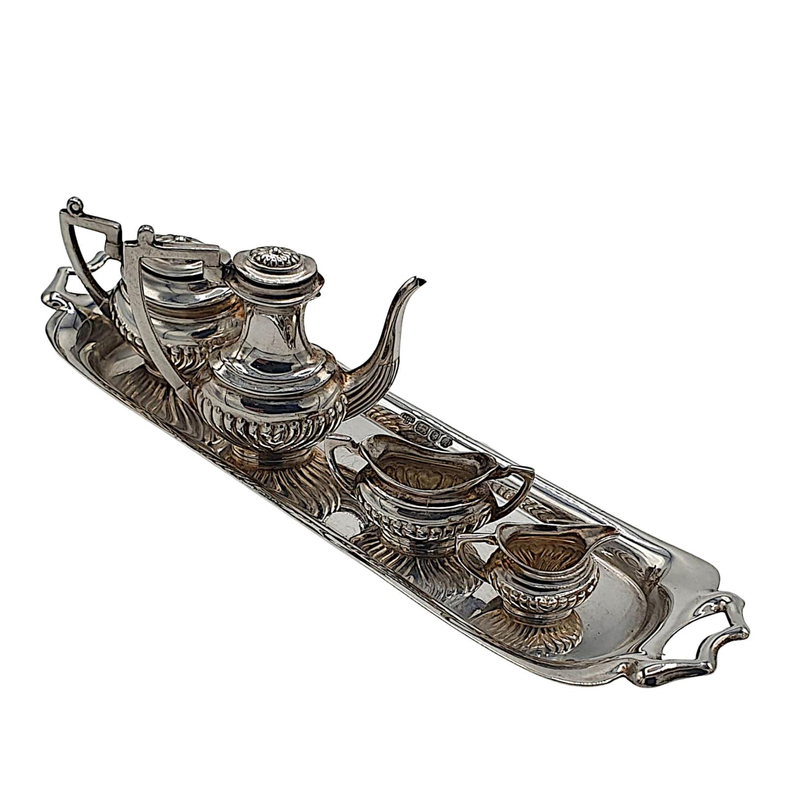 A Lovely 20th Century Sterling Silver Miniature Tea Set and Tray