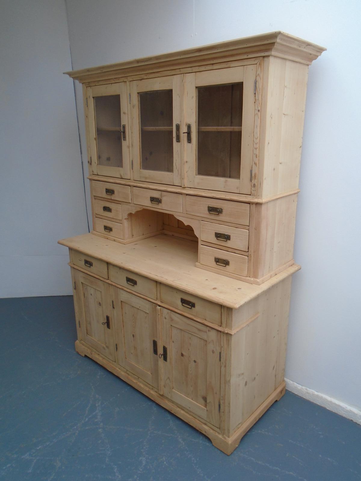 A Lovely 3 Door Antique / Old Pine 7 Spice Drawer Kitchen Dresser to Wax / Paint