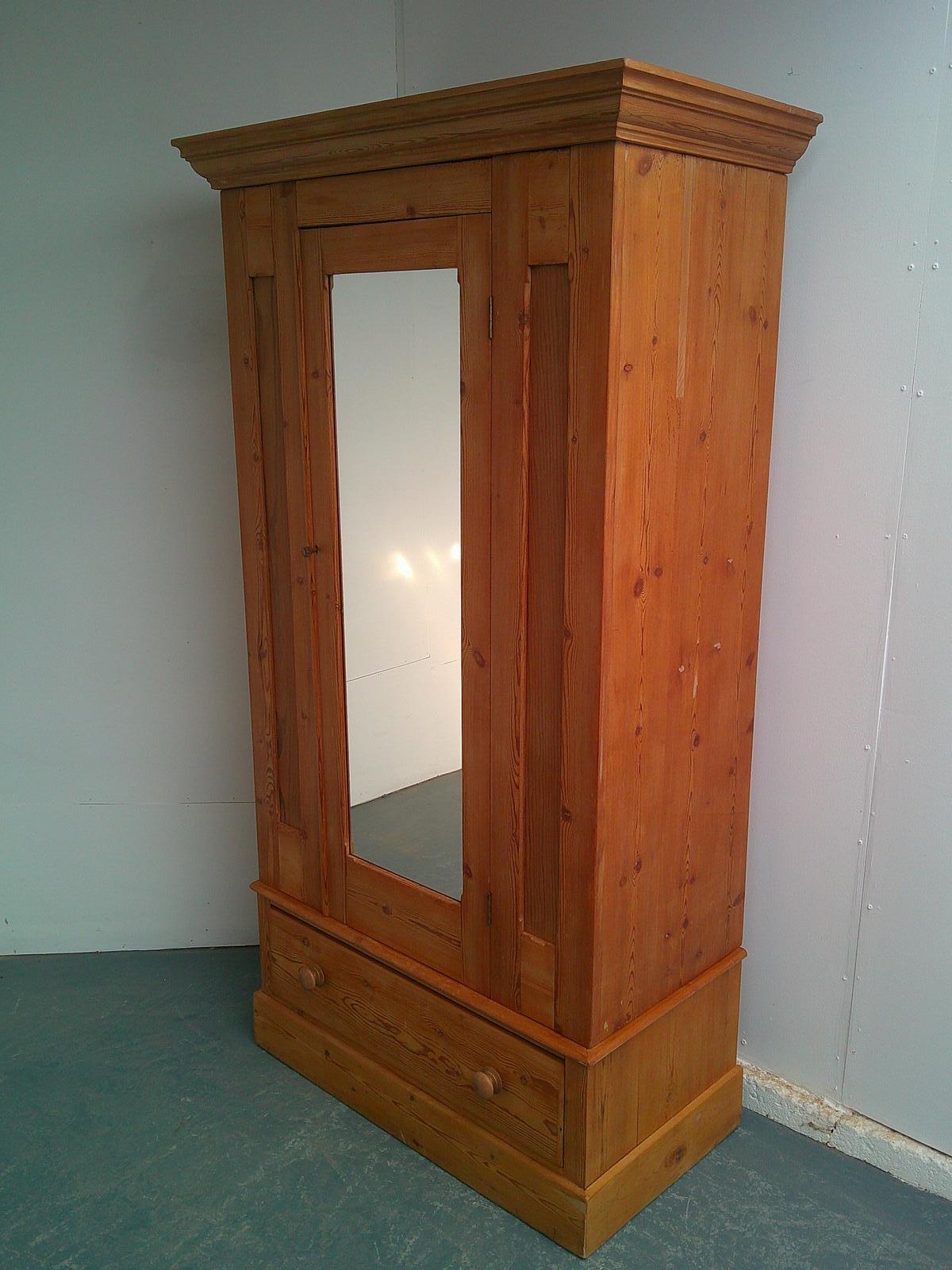 A Lovely Antique / Old Pine Waxed 3 Piece Mirrored Victorian Wardrobe