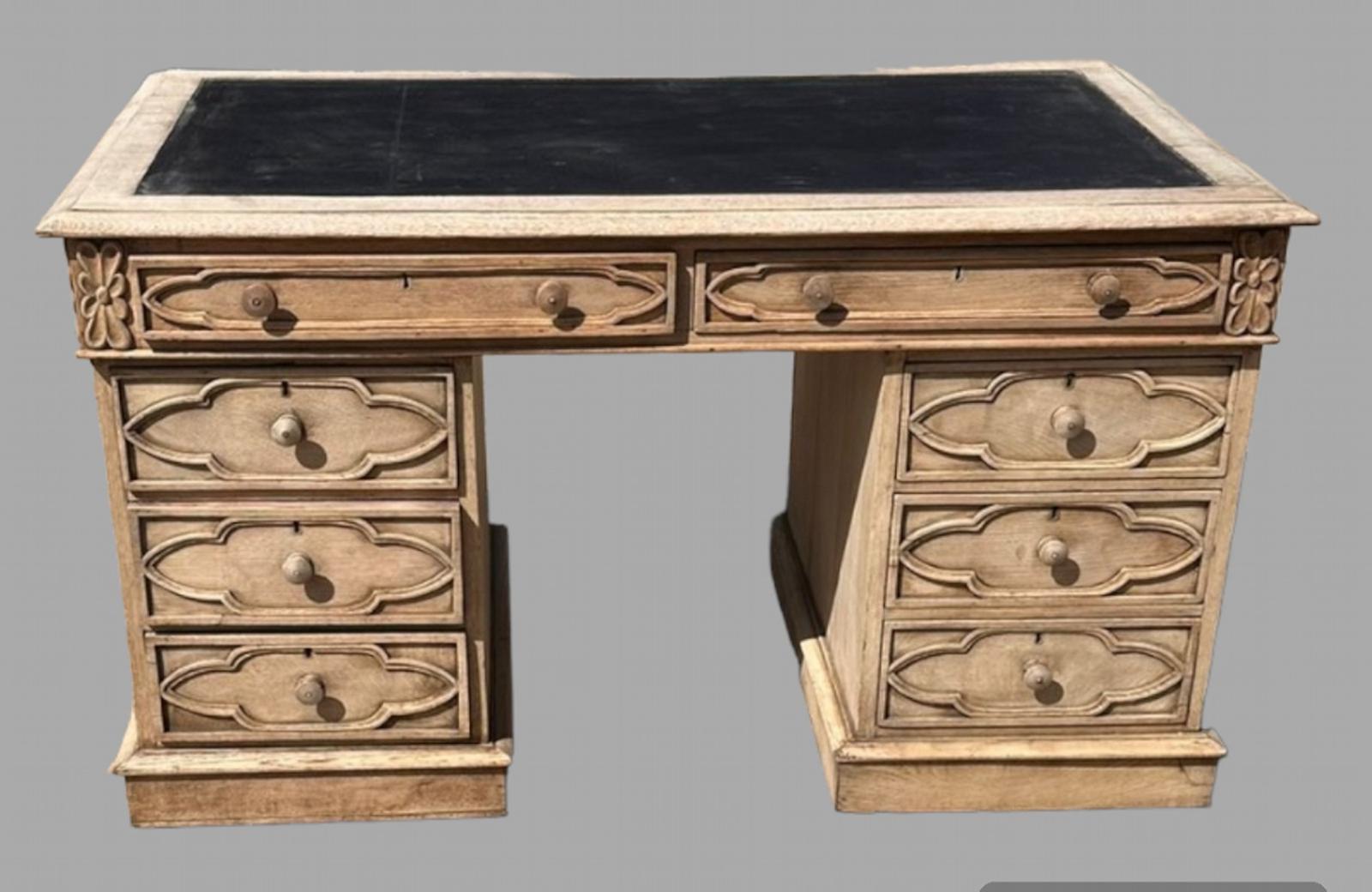 A Lovely Bleached Oak Pedestal Desk c.1880