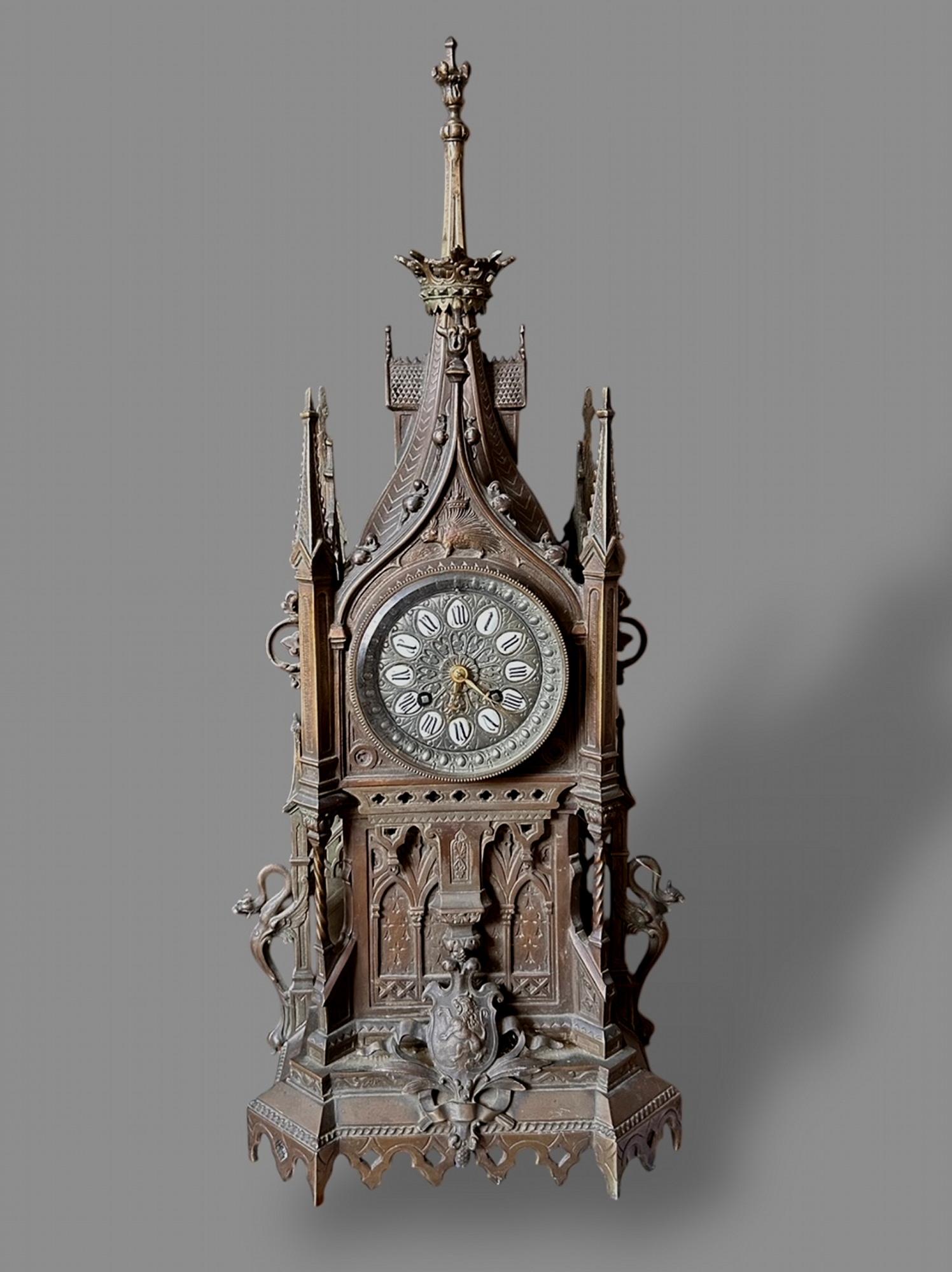 A Lovely French Bronze Gothic Shelf Clock (1 of 13)