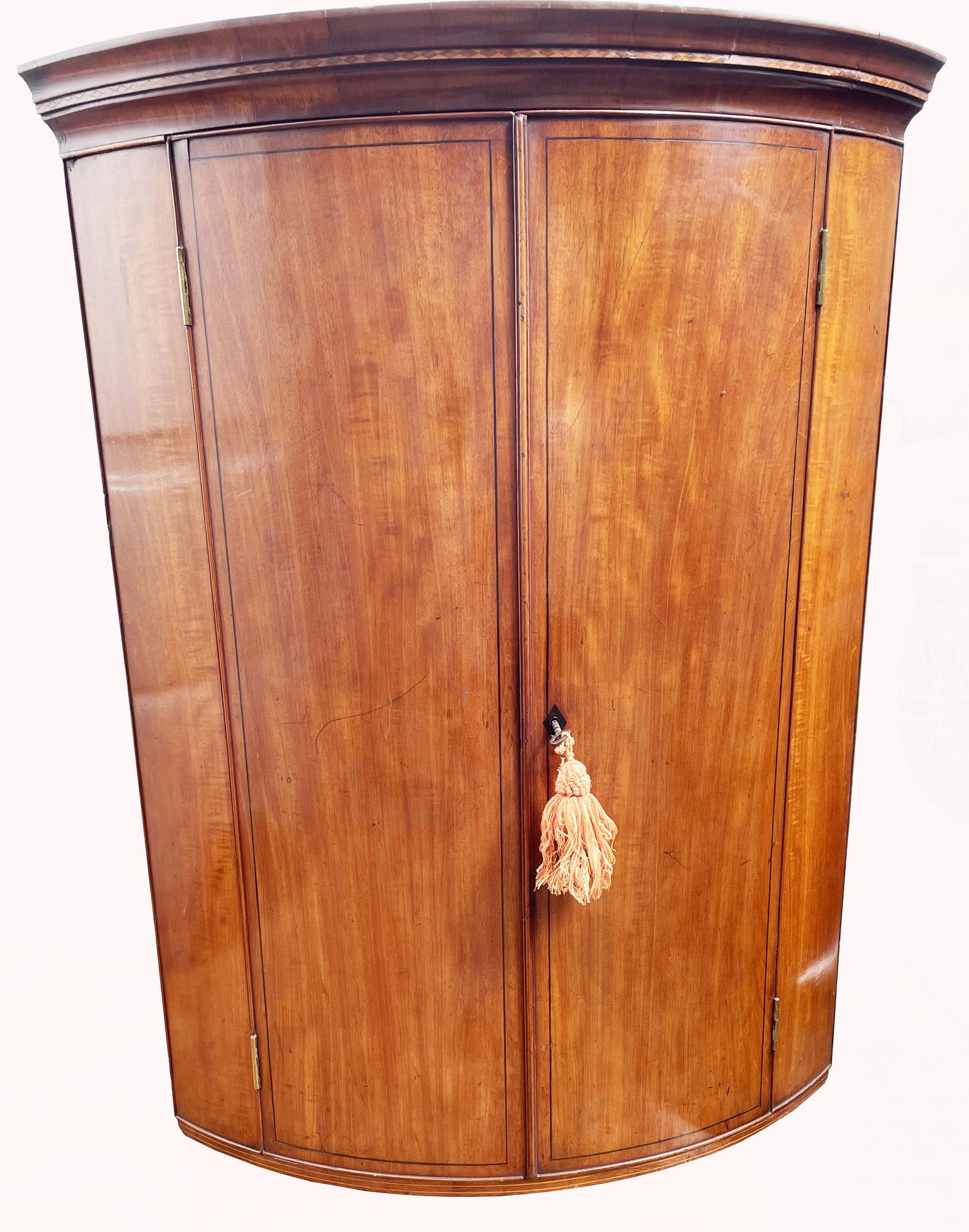 A Lovely George III Mahogany Bowfronted Hanging Wall Corner Cabinet